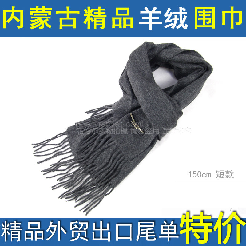 📚 内蒙 纯色深灰 黑灰 纯山羊绒水纹秋冬保暖围巾男女通用 商务短款