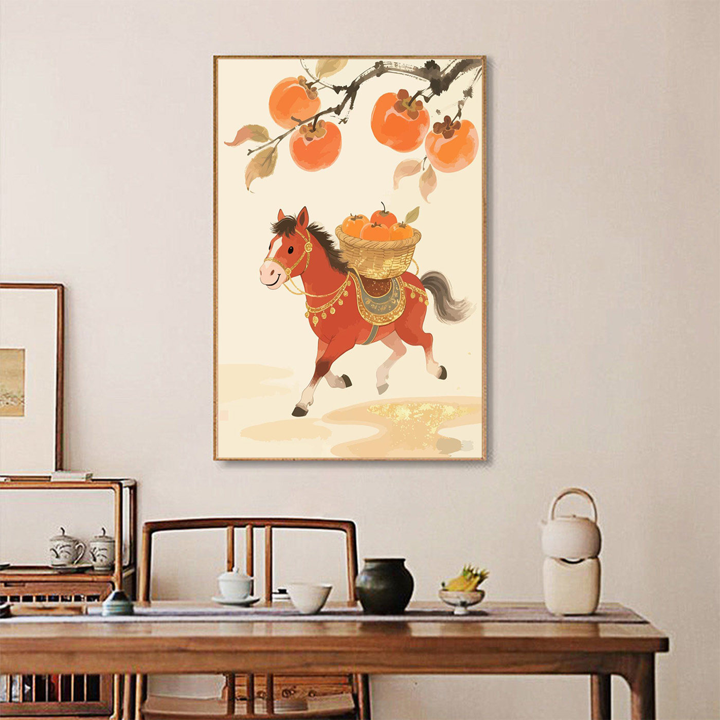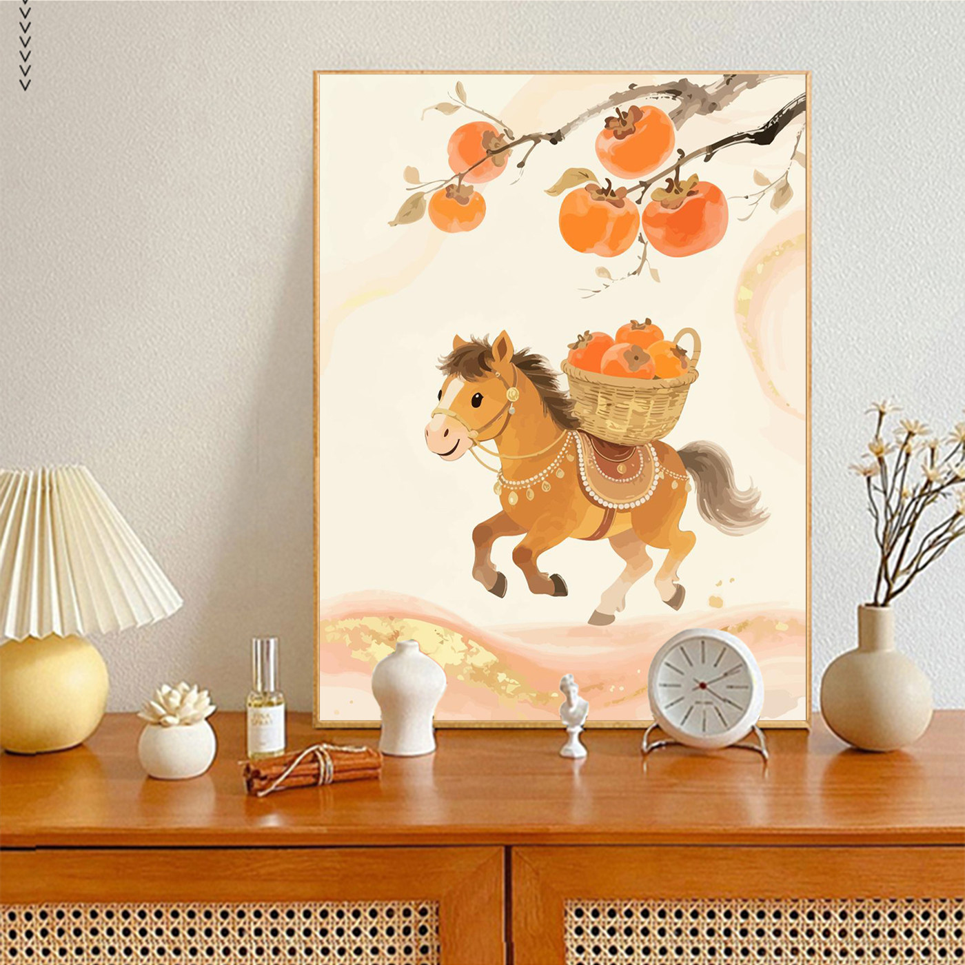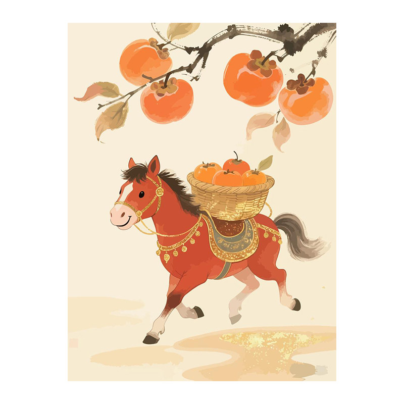 📚 马上有喜柿数字油画diy填充色手工绘丙烯新年节日客厅摆件装饰画
