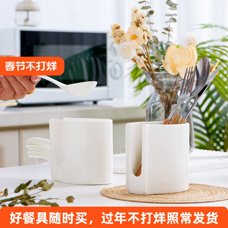 📚 家用骨瓷勺子笼纯白异形勺子收纳筒厨房勺筷收纳架陶瓷饭勺收纳盒