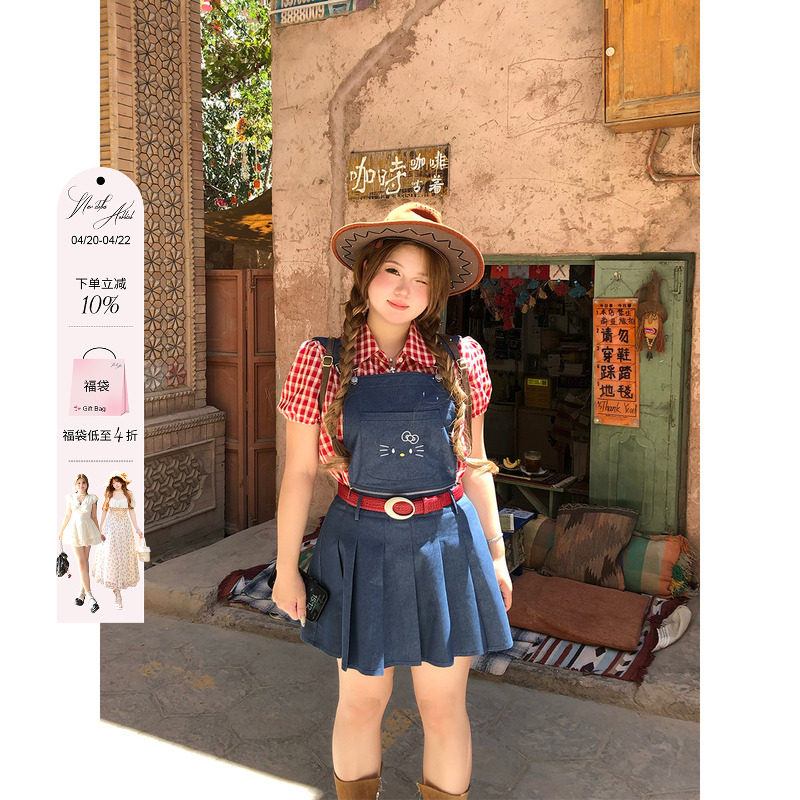 📚 安妮不火 古城爱丽丝一衣多穿kt刺绣背带裙女微胖大码可爱收腰裙