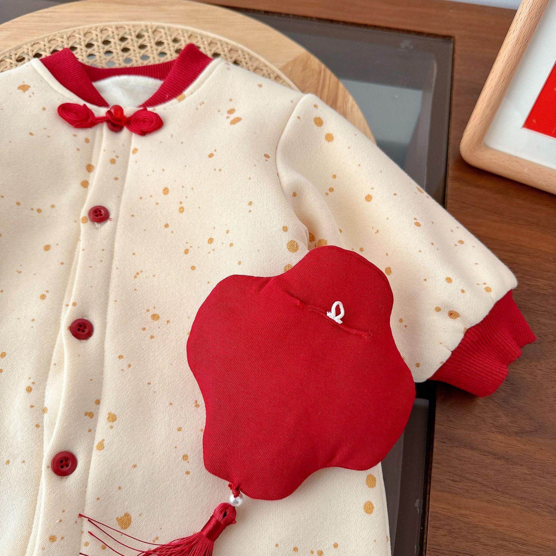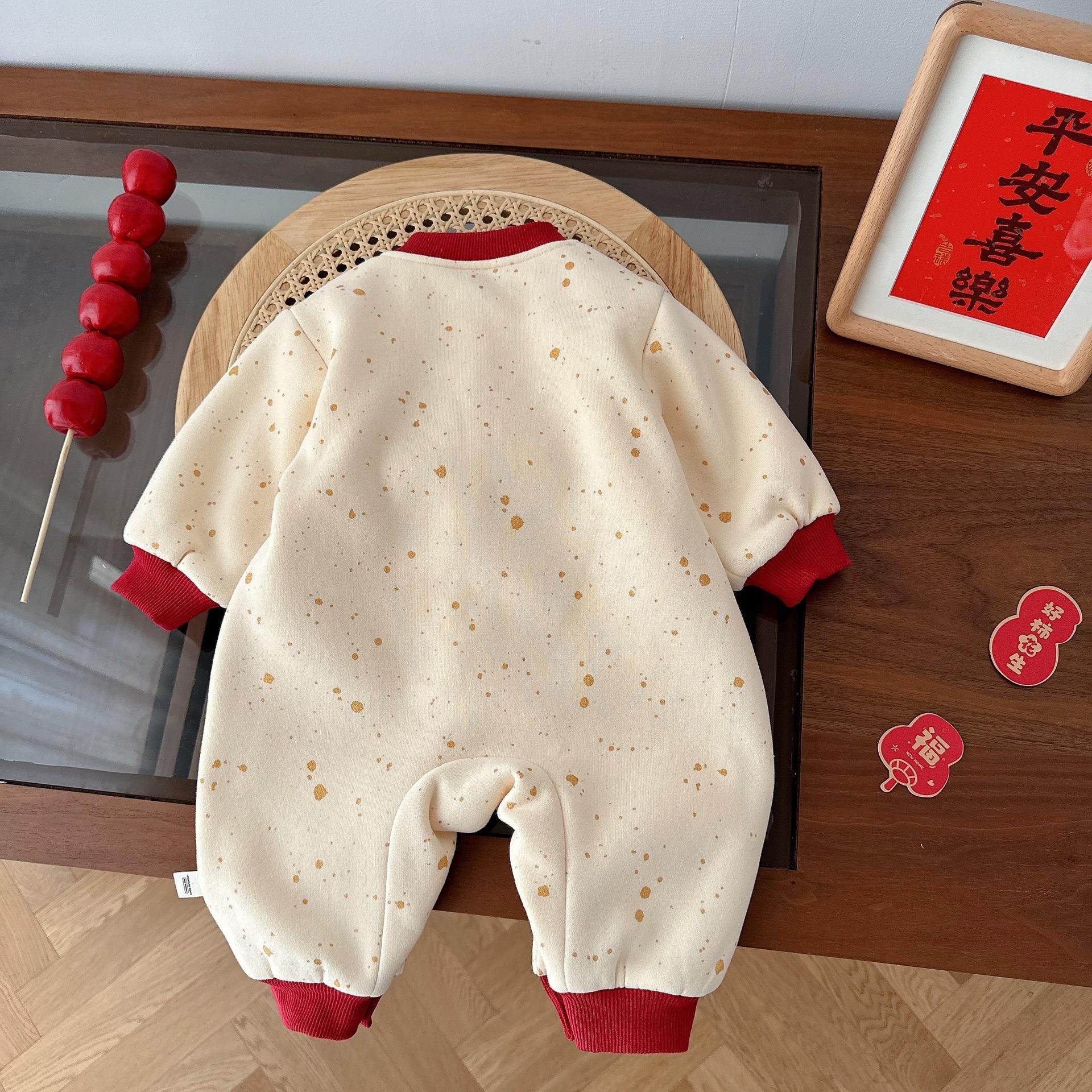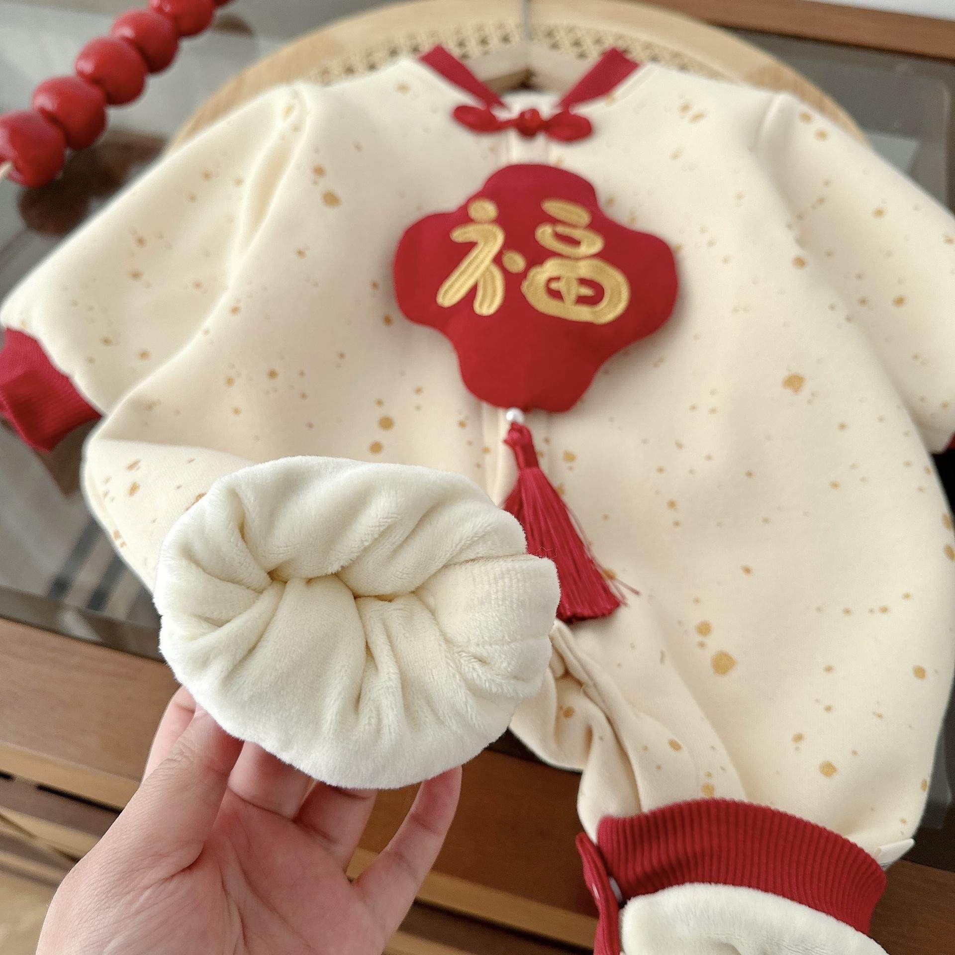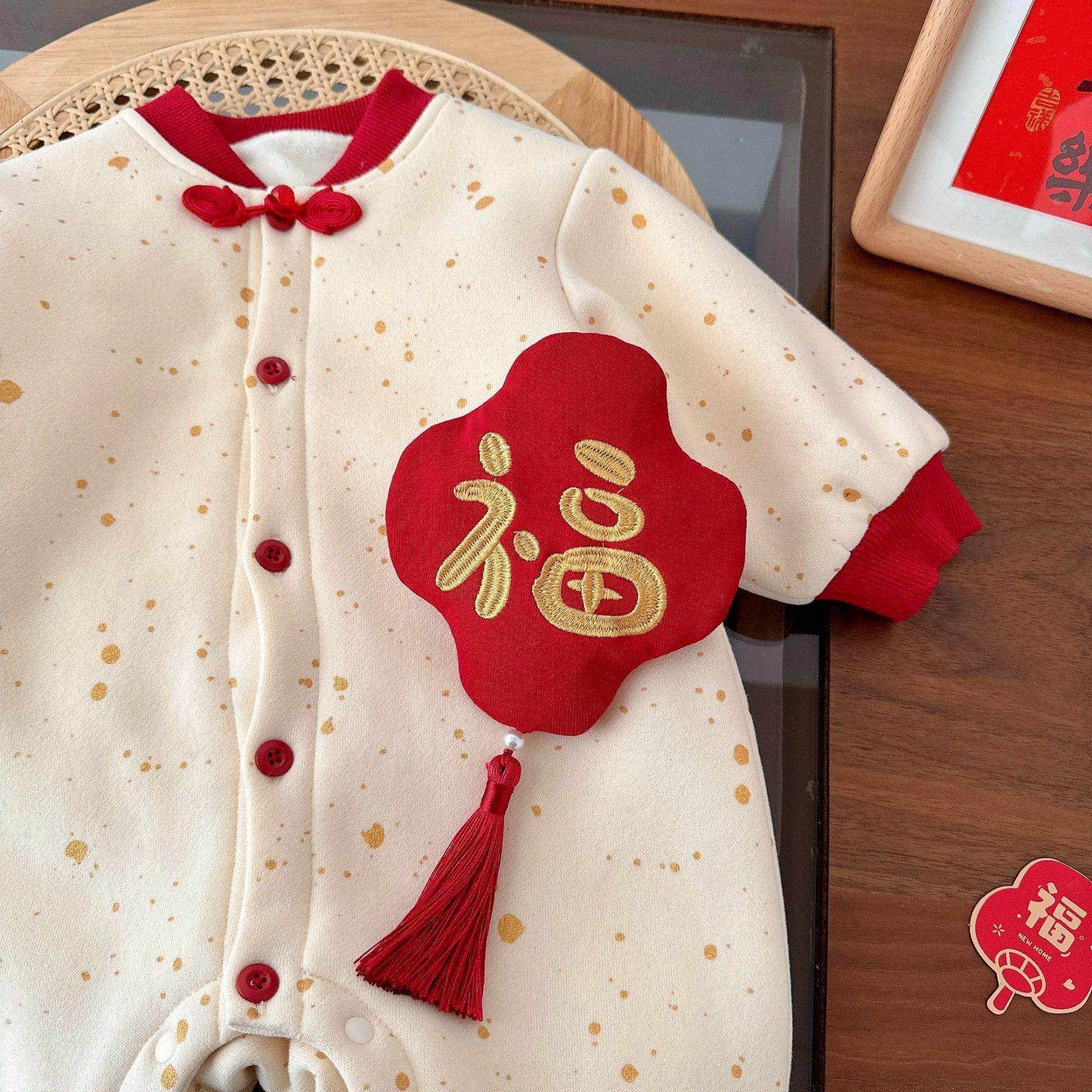 📚 过年拜年服婴儿秋冬衣服男女宝宝连体衣加绒国潮风百天周岁爬爬服