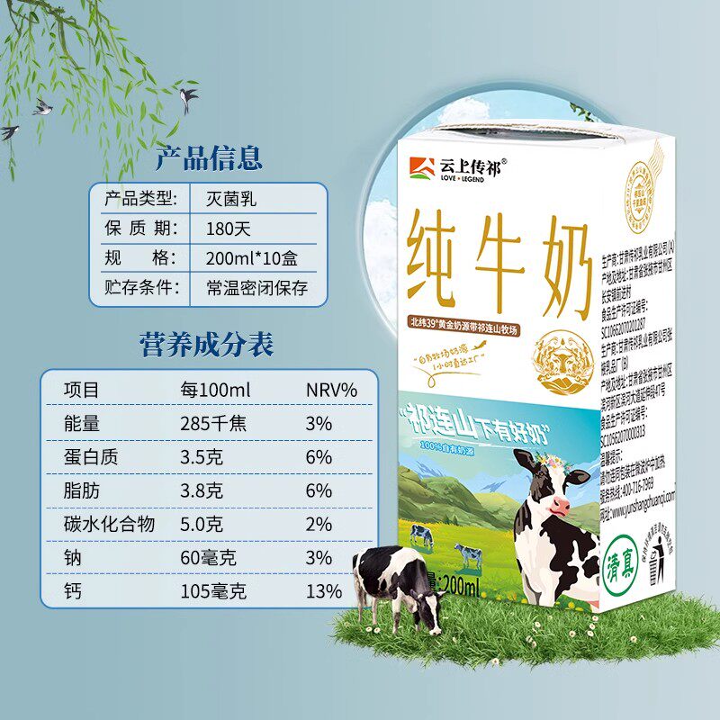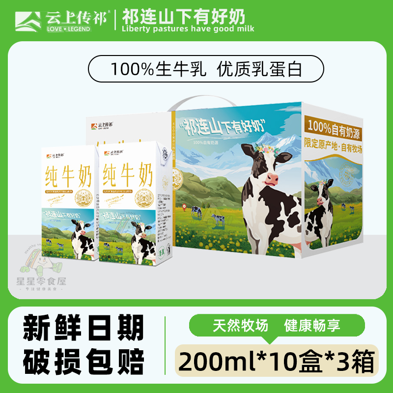📚 【3箱30盒】云上传祁纯牛奶小飞天200ml营养早餐全脂生牛乳蛋白奶