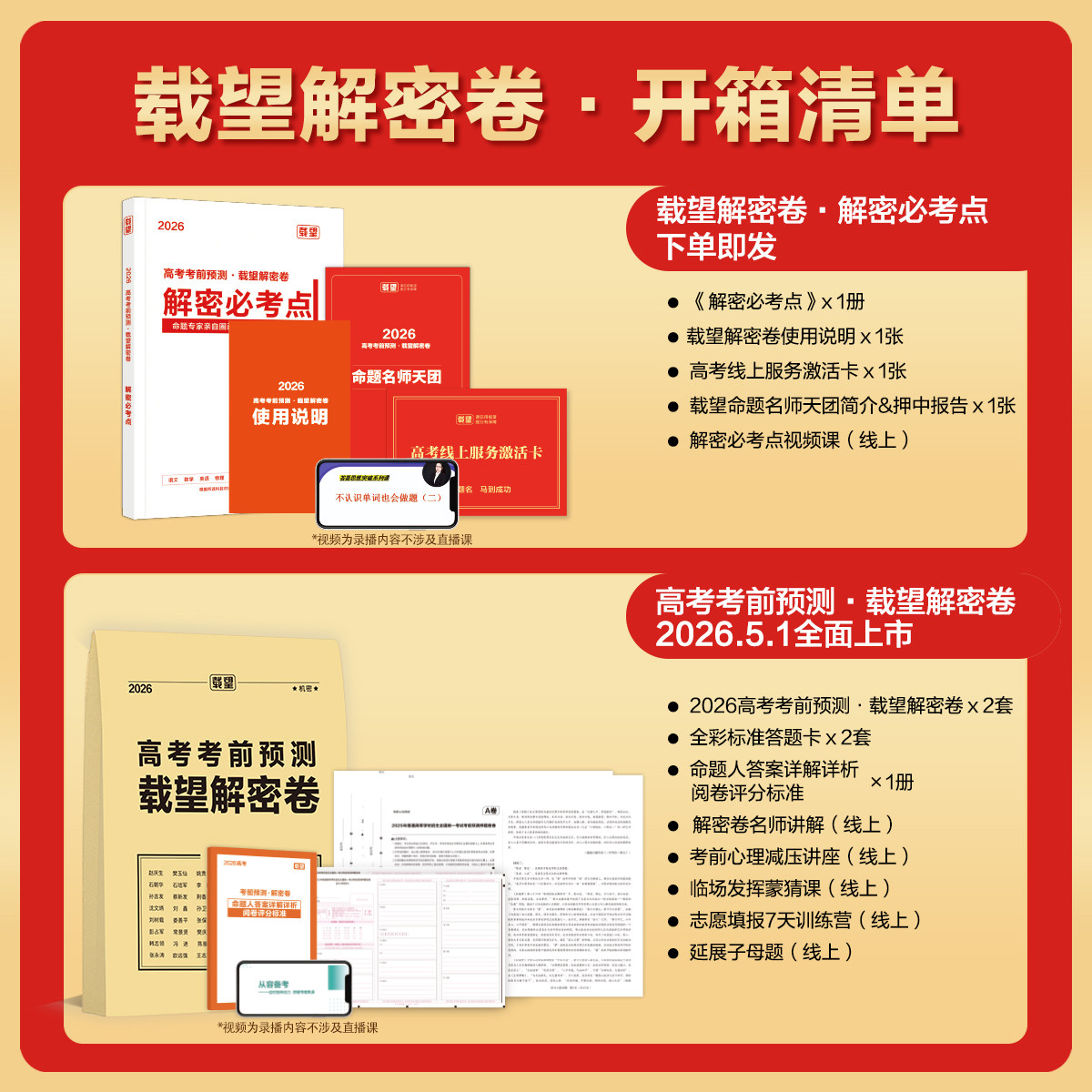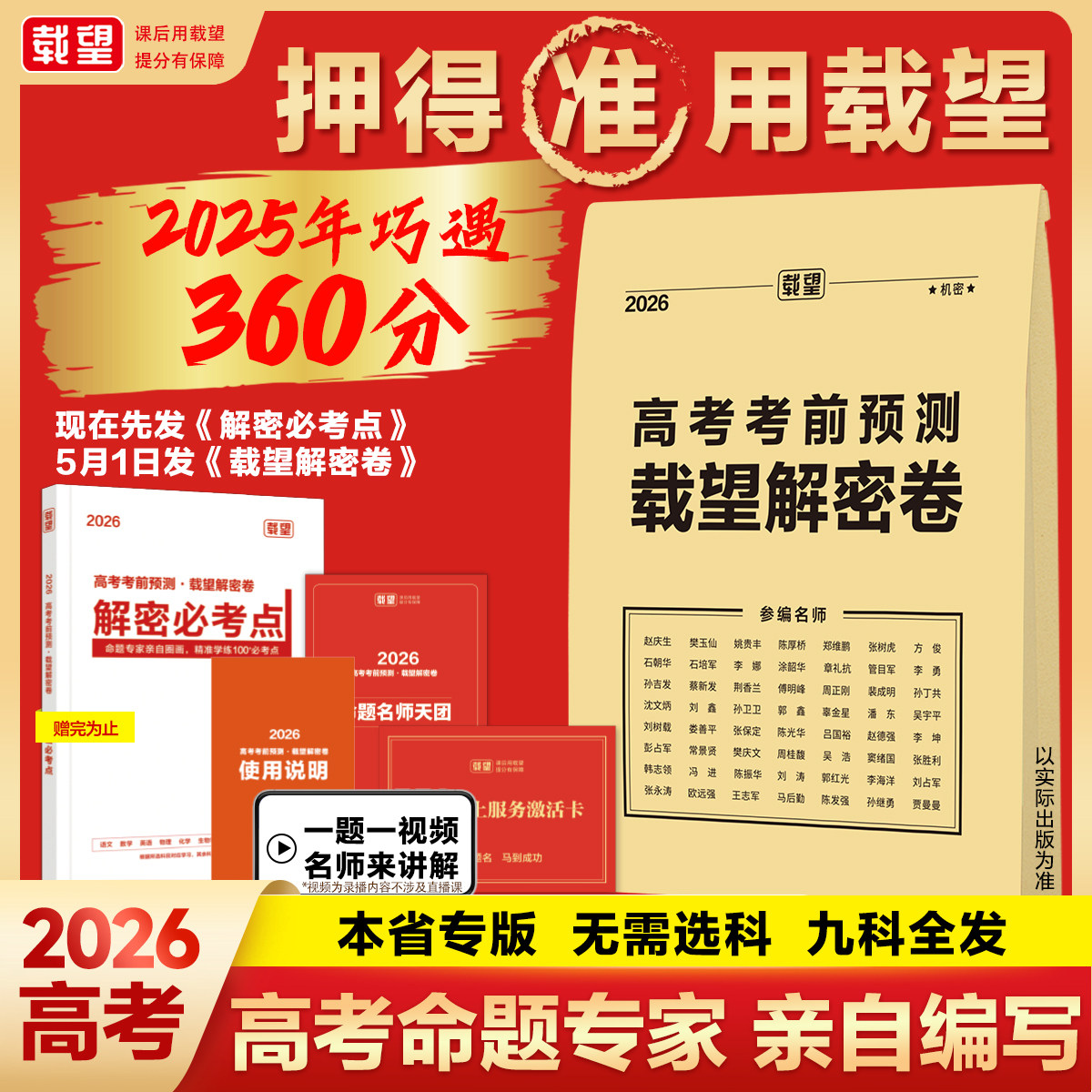📚 2026载望新高考临考前预测押题解密封卷语文数学英语文理科物理猜题金考卷新版教材全国高三复习资料冲刺抢分摸底必刷试卷最后一卷