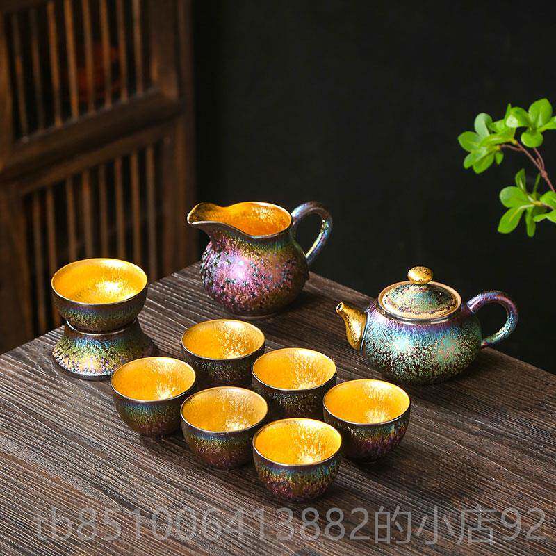 📚 高档高建功夫茶具套组七彩盏鎏金端轻奢茶壶茶杯瓷整套金盏陶创意