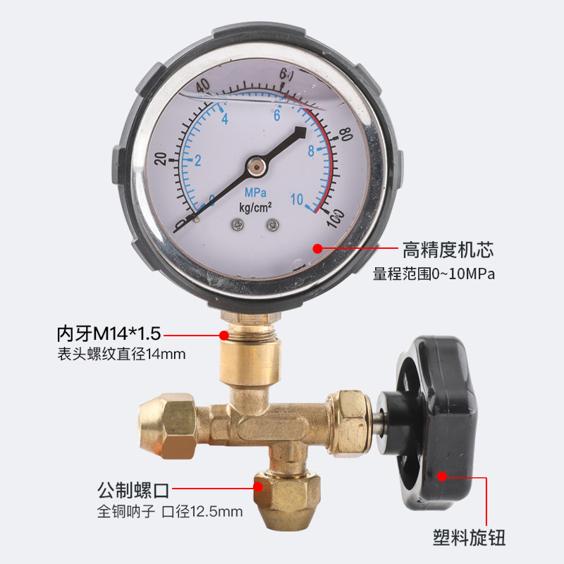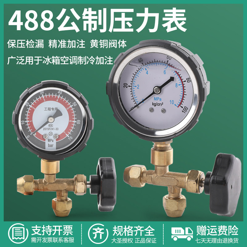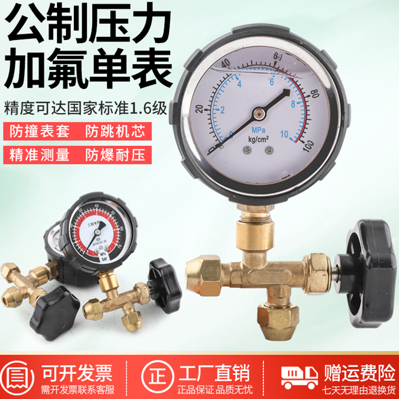 📚 488保压表中央空调压力表打压表三通阀60/70/100公斤氮气油表R410