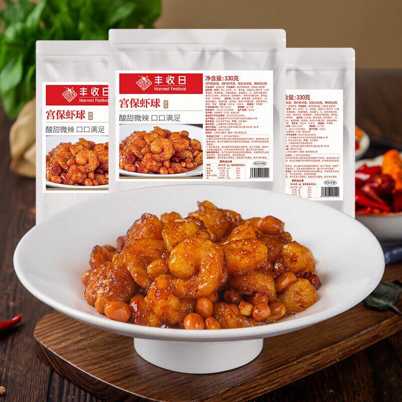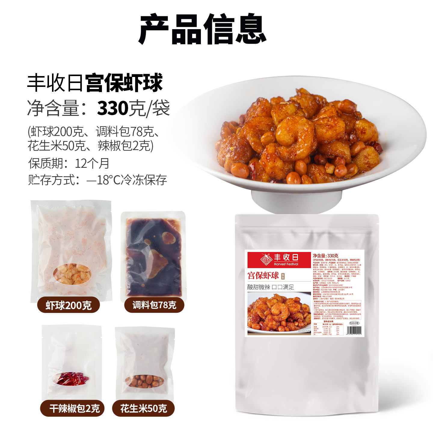 📚 丰收日宫保虾球330g*3袋菜品调料包组合懒人快手菜速冻快捷半成品