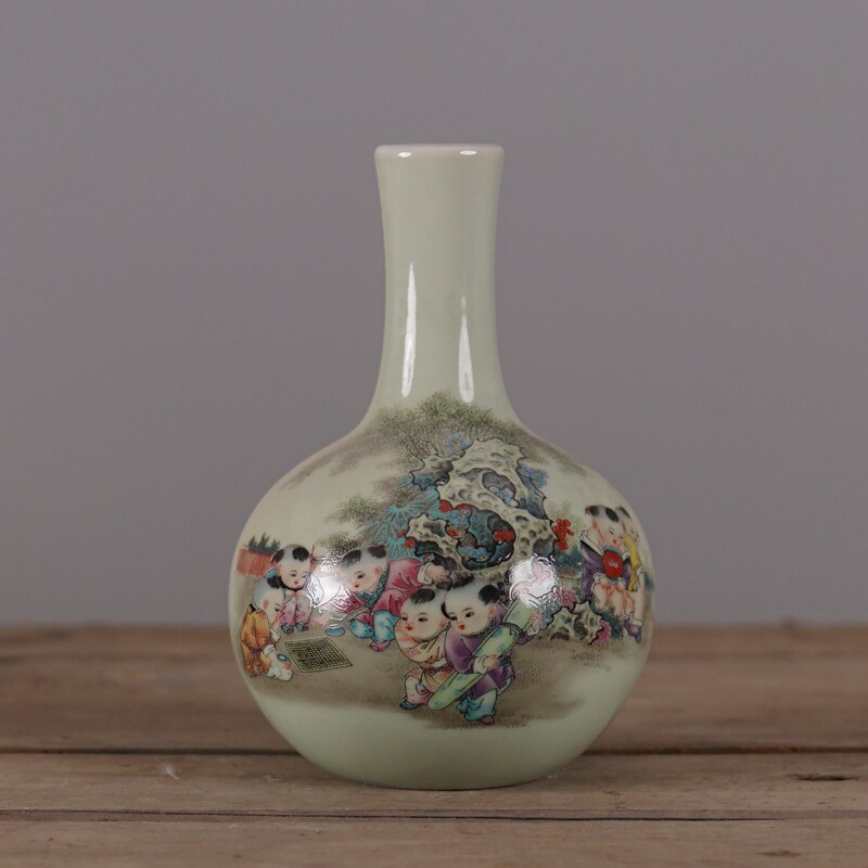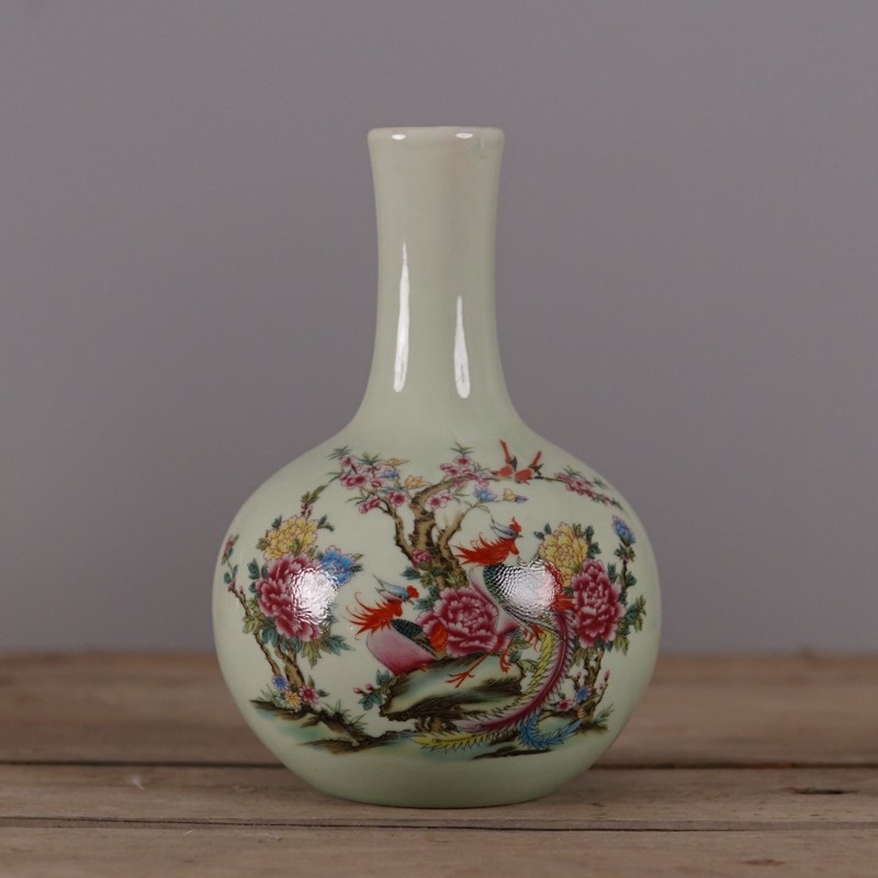 📚 仿大清乾隆粉彩富贵长寿图小胆瓶 仿古瓷器摆件古玩老货收藏品