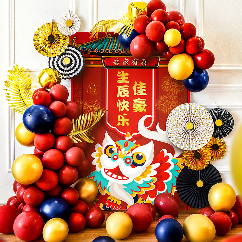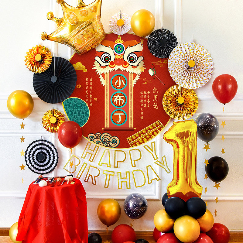 📚 男宝宝周岁抓周生日布置中国风气球装饰道K具中式抓阄用品套装女