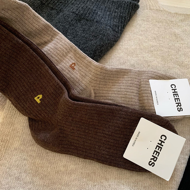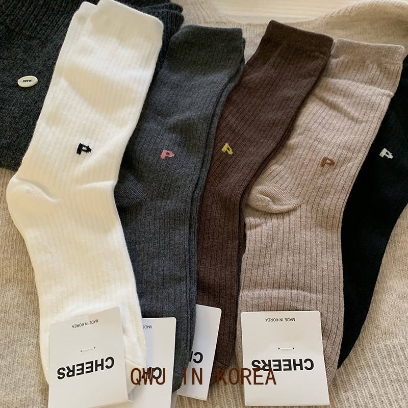 📚 洋气!P小字母韩国进口ins同款纯色堆堆袜女棉袜百搭运动学生袜子
