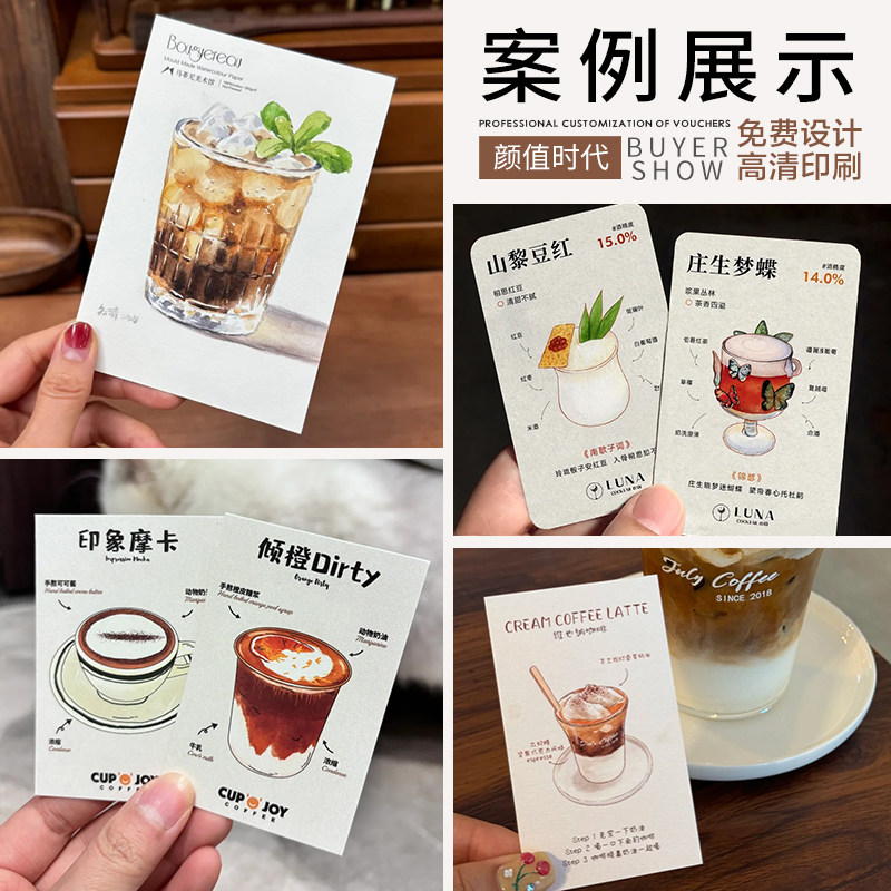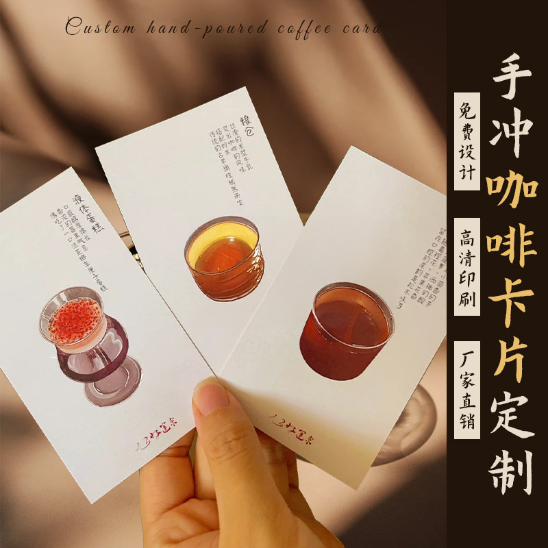 📚 手冲咖啡卡片定制产品说明介绍风味礼品卡订做手写配方饮品店温馨提示小贺卡设计活动奶茶积分卡广告包装卡硬