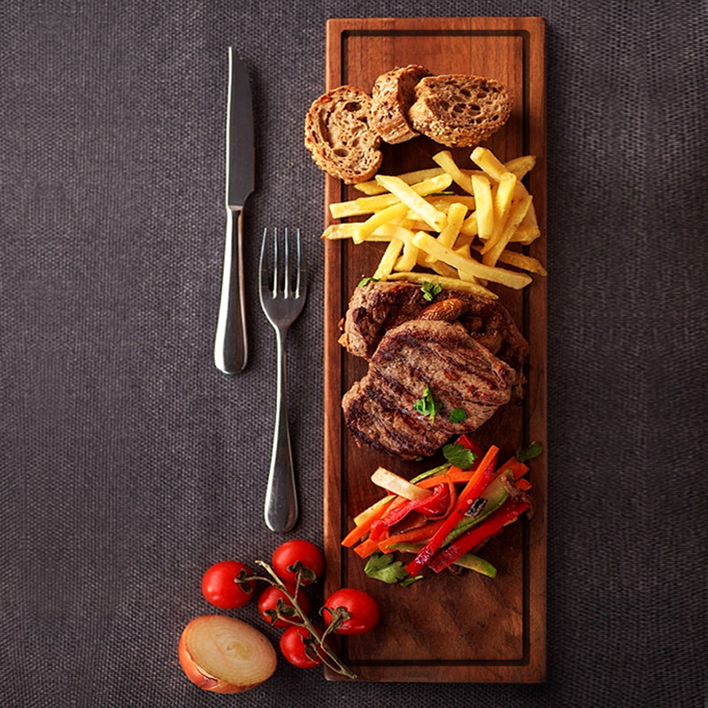 📚 木质牛排盘西餐盘牛扒餐具披萨盘烤肉碟烤盘西式创意盘面包板底托