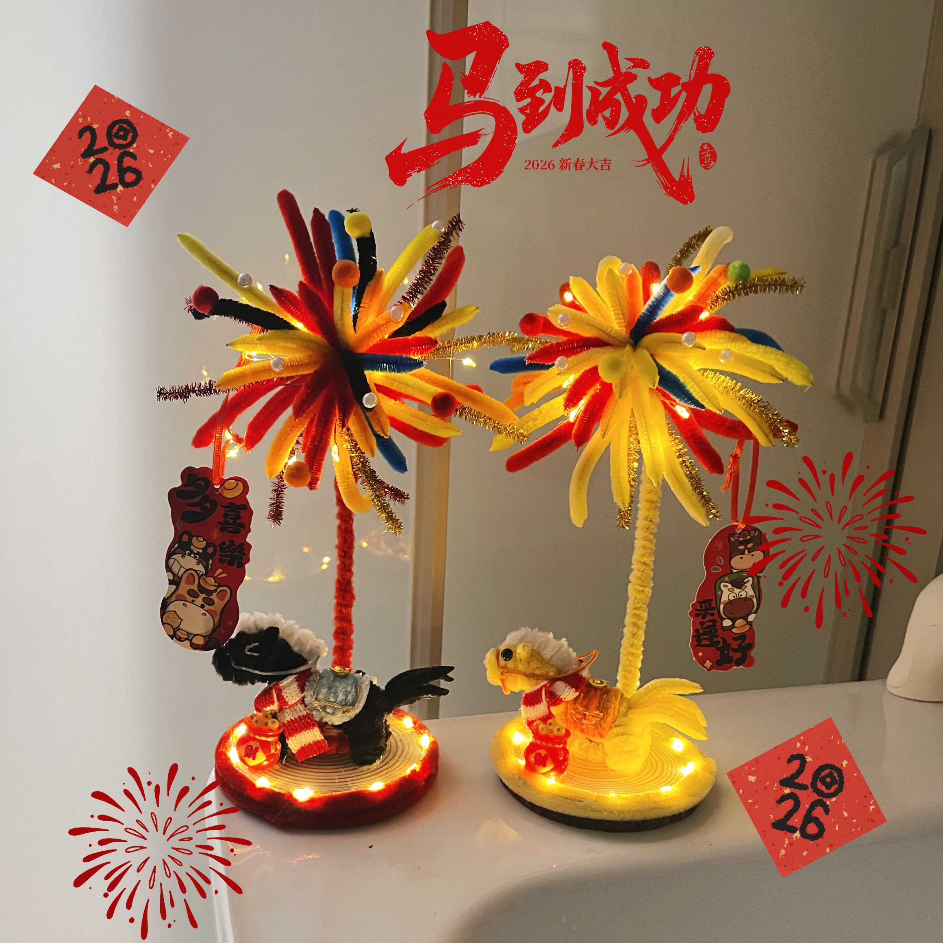 📚 diy手工2026新款小黑马扭扭棒材料发光摆件送女朋友新年创意礼物