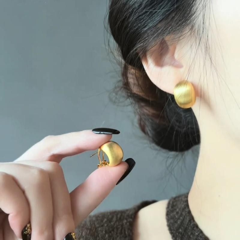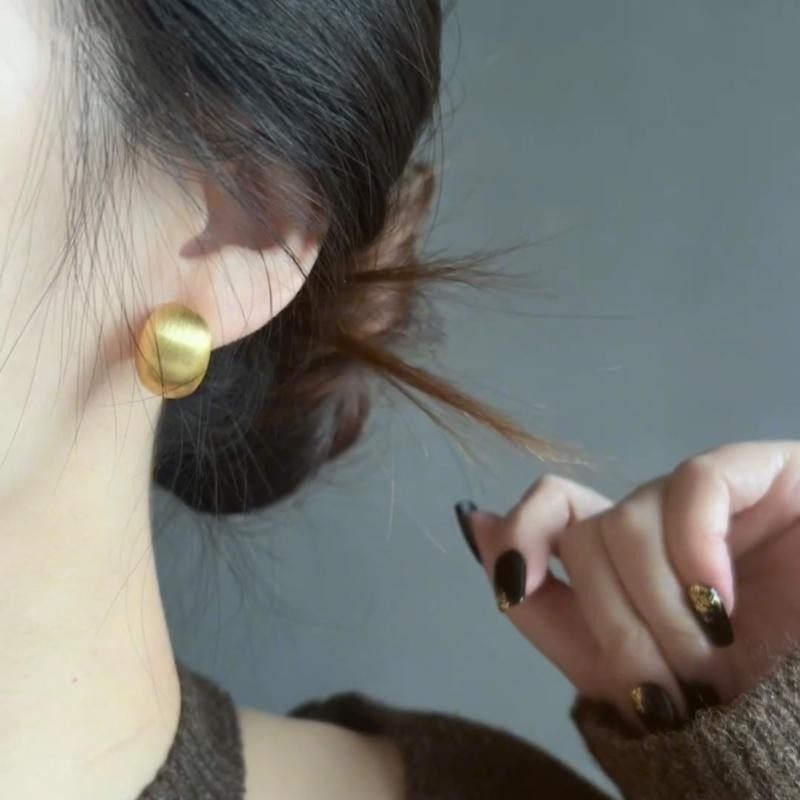 📚 925银针金色拉丝半圆耳环女2025新款爆款耳钉高级感气质百搭耳饰