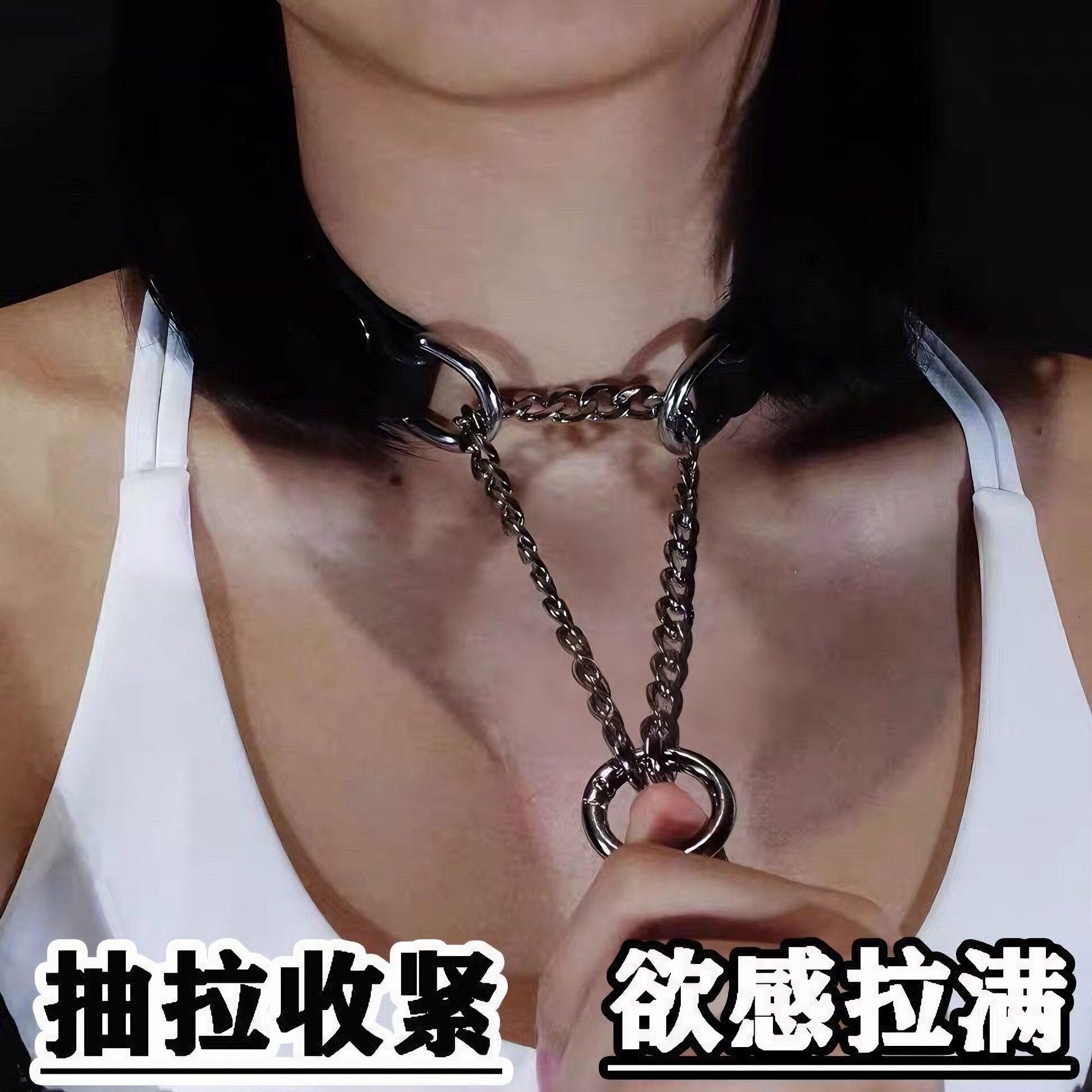 📚 哥特链条choker颈带项链窒息项圈金属链抽拉收紧朋克风项圈牵引绳