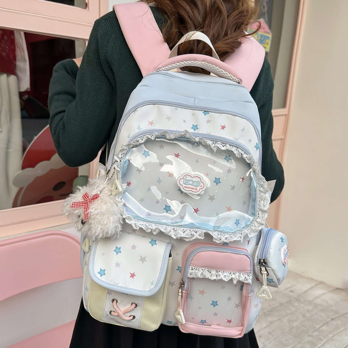 57¥ HU287 eYz3UPPGdQN¥ https://m.tb.cn/h.7FEtGdb 2026春季新款书包女高颜值甜美蕾丝痛包韩系多巴胺初高中生双肩包 --------------------- 【原售价】136元 【现售价】136元。