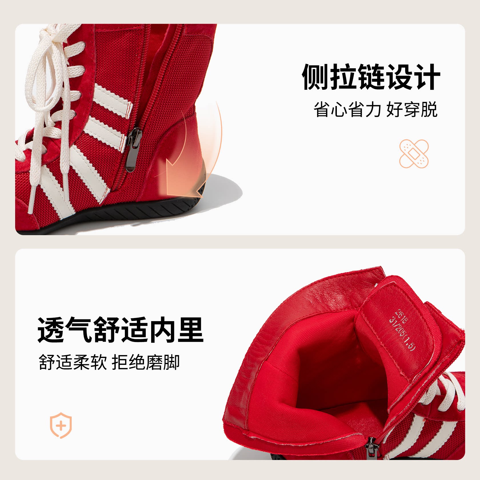 📚 FVM女童鞋子儿童红色加绒马丁短靴子2025冬季新款德训女孩拳击靴