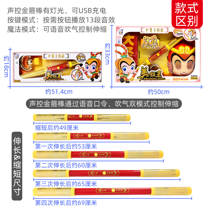 📚 孙悟空吹气自动收缩声控金箍棒儿童玩具可伸缩棍齐天大圣生日礼物