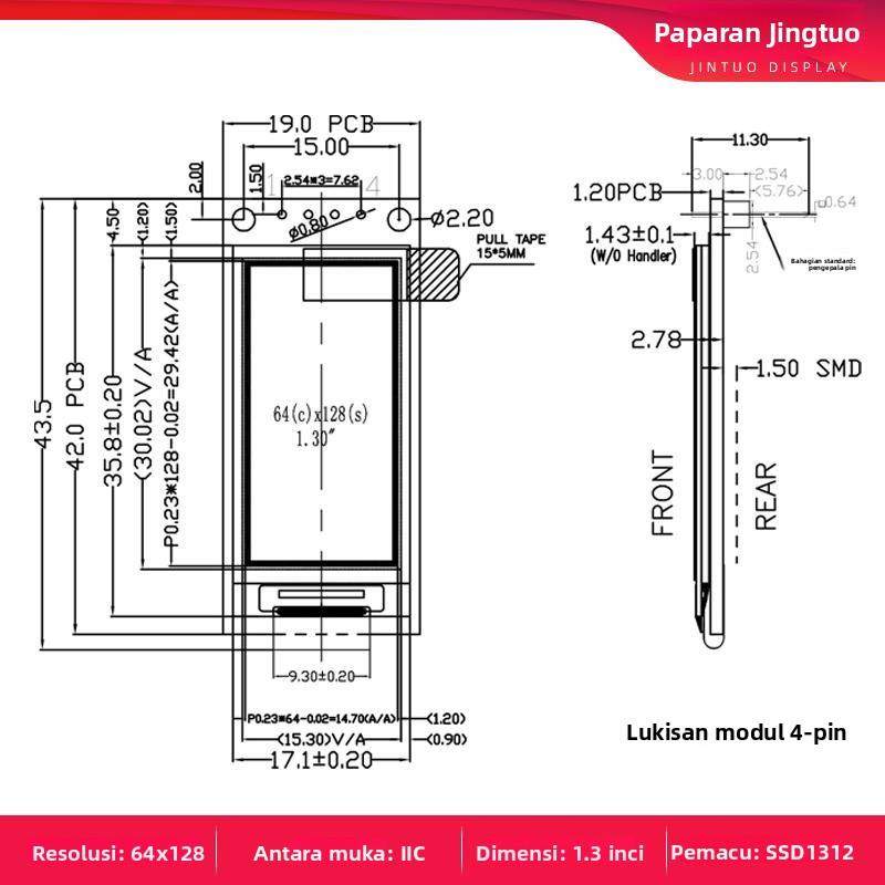 📚 1.3寸OLED液晶屏SSD1312小屏幕128*64竖屏4针模块IIC显示器驱动板