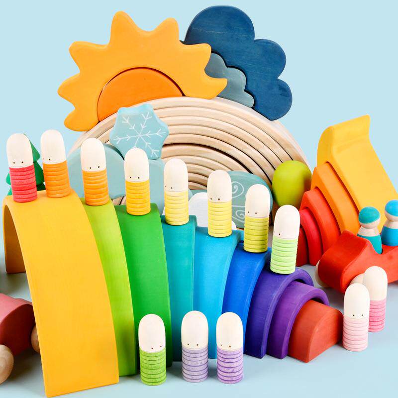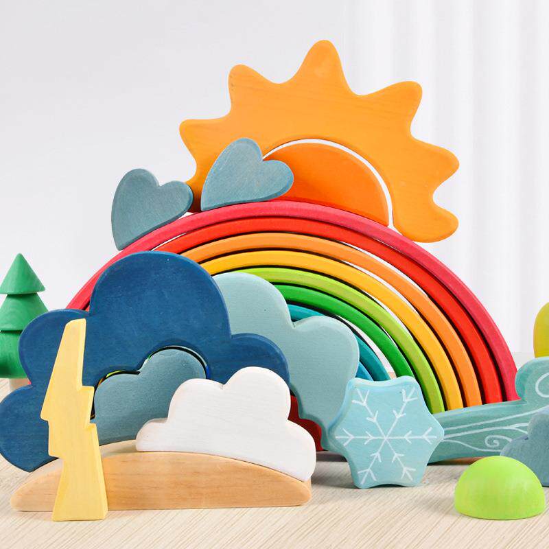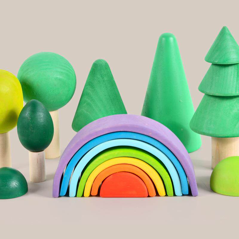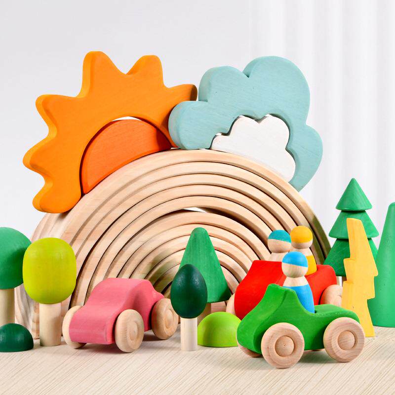 📚 四大素积木椴木阶智梯儿童过质家家益玩元具木彩虹叠叠73高实木