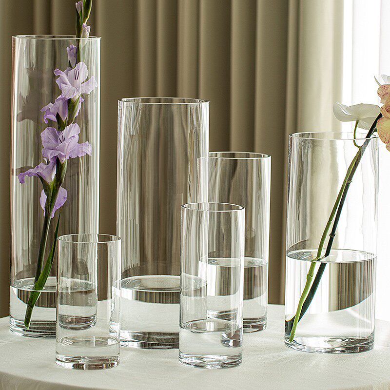 📚 【1030】高30cm口径10cm落地加厚透明玻璃花瓶直筒水培花瓶富贵竹