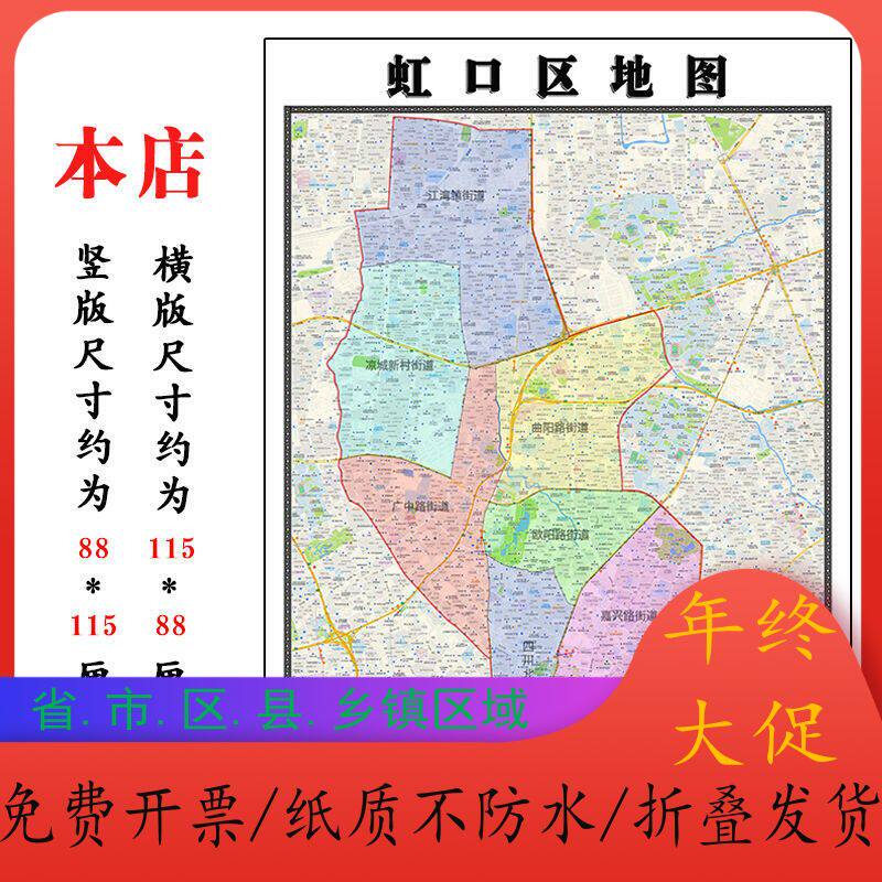 📚 虹口区折叠地图1.15m大尺寸办公室背景装饰画上海市高清贴画现货