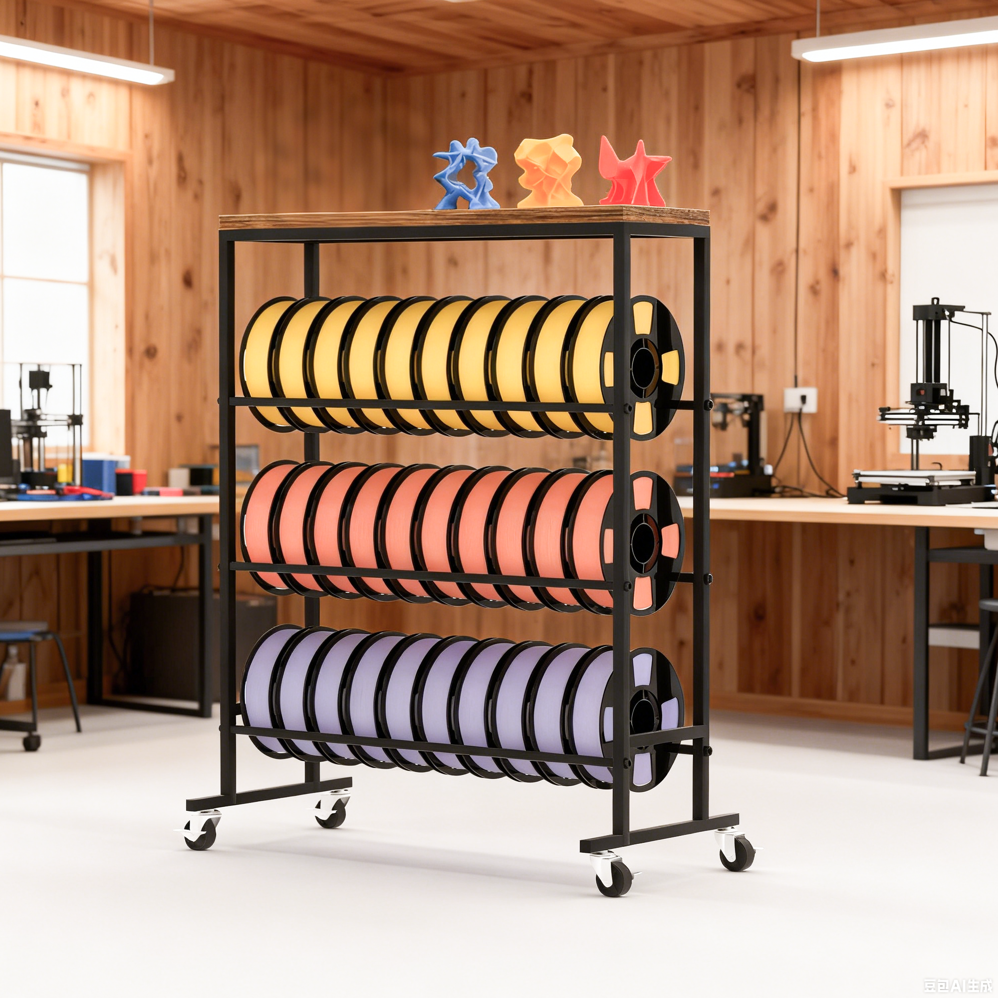 📚 3d打印耗材收纳架可储存30卷耗材可移动耗材收纳车带顶板置物架