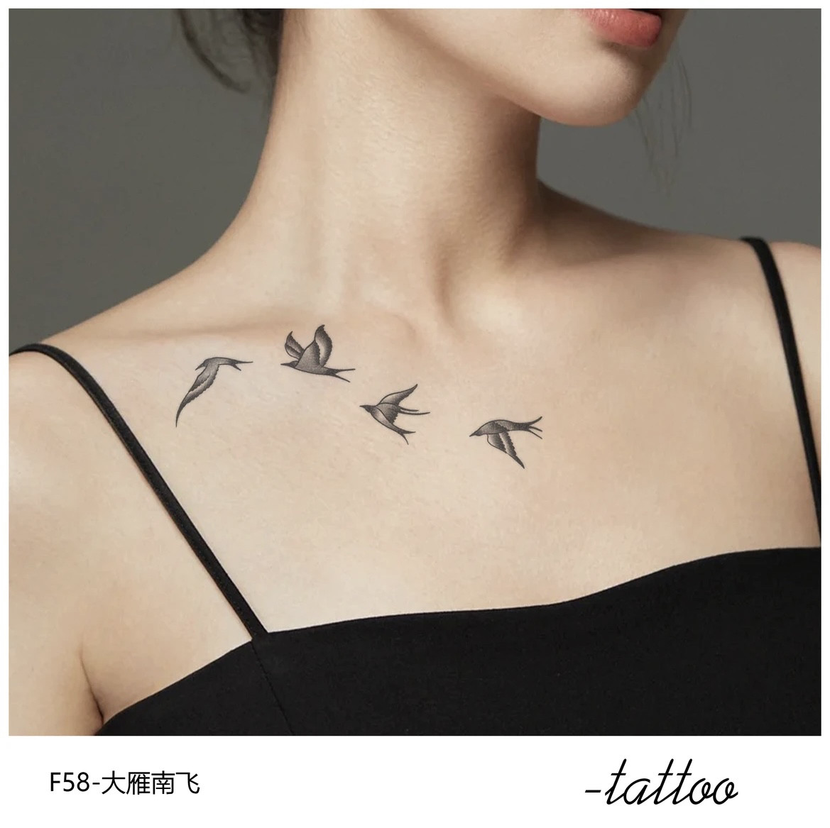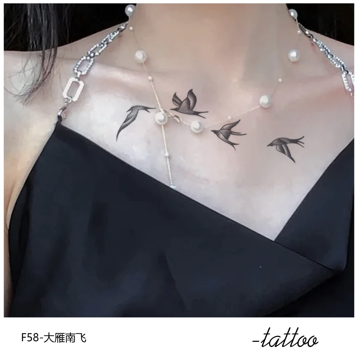 📚 2张大雁南飞1肆象草本纹身贴女款锁骨大雁南飞半永久防水持久逼真