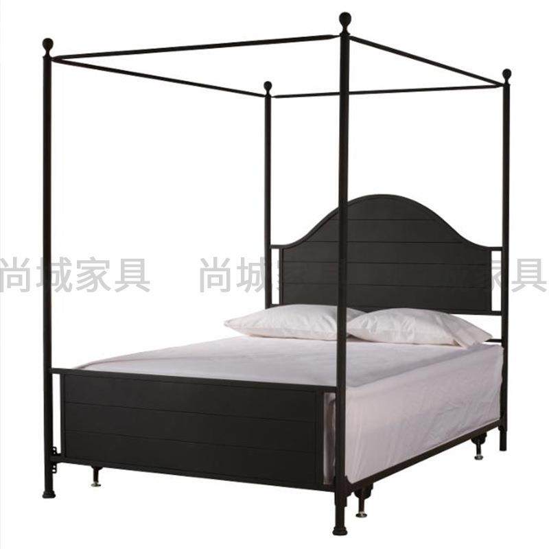 📚 美式实木黑色1.5米1.8米四柱双人床简约主卧婚床民宿帷幔公主床
