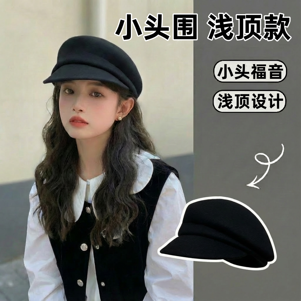 📚 贝雷帽小头围高级感女士小号百搭不对称八角帽52cm法式复古礼帽xs