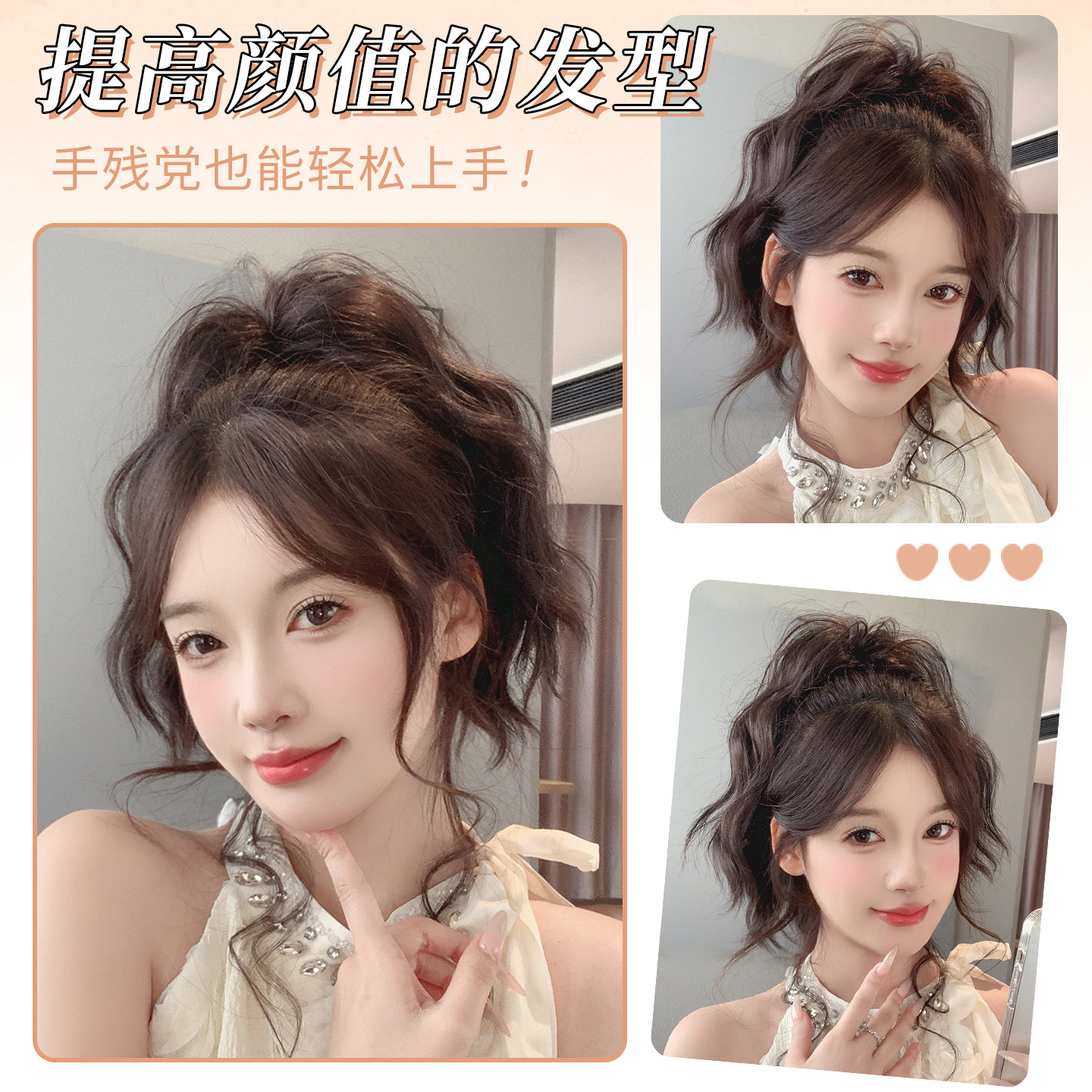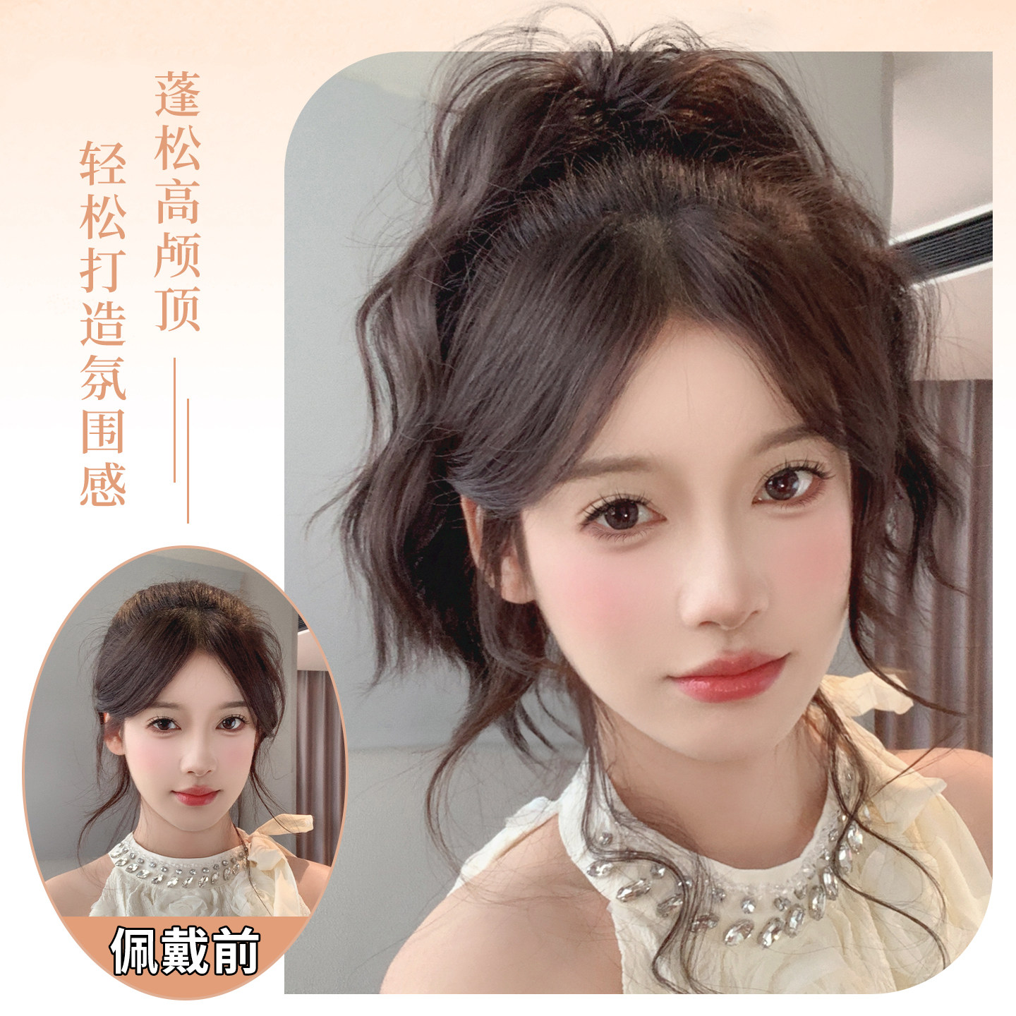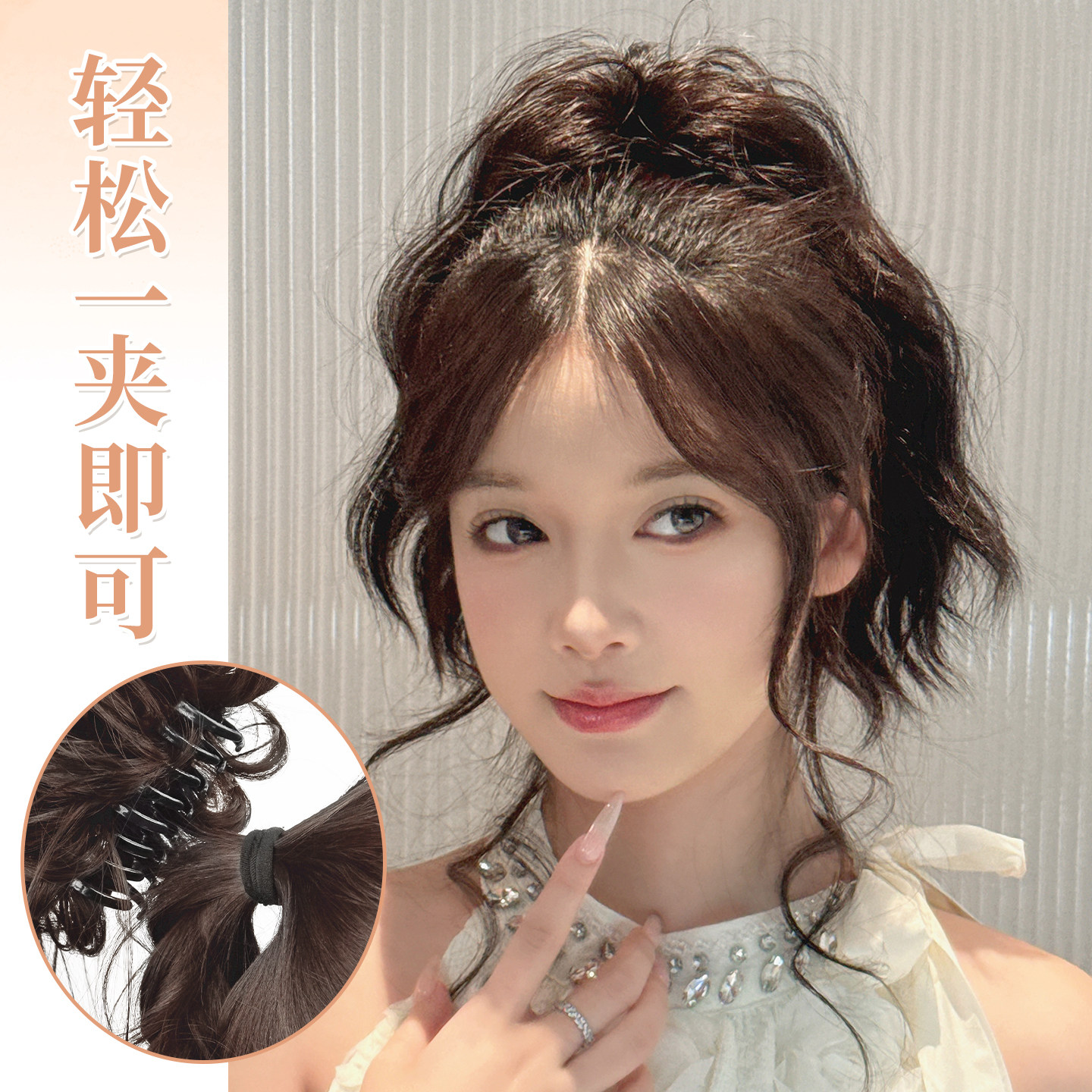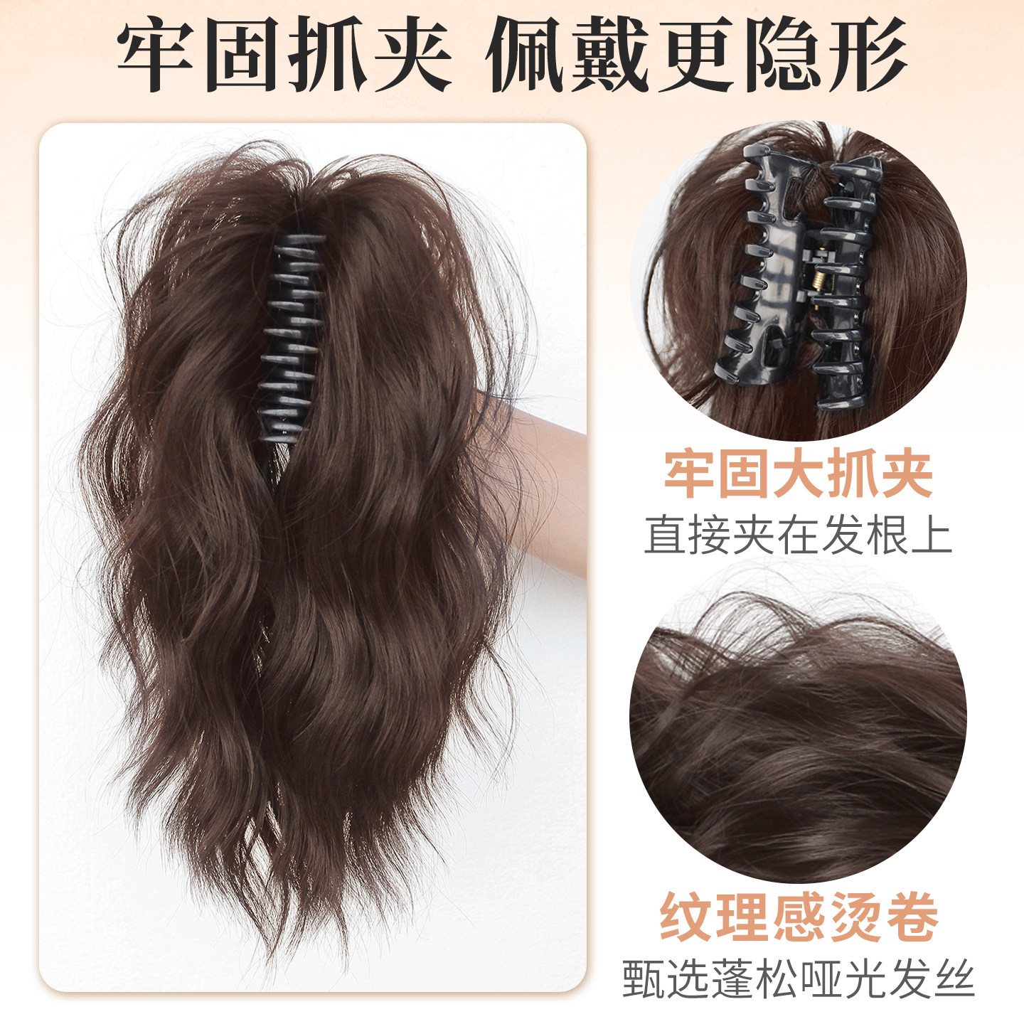 📚 云朵烫高颅顶蓬松短马尾假发抓夹式超轻盈增发喷泉卷发假辫子马尾