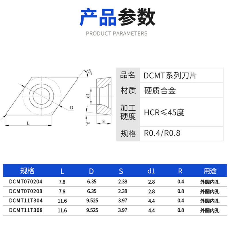 📚 特固克镗孔车刀片DCMT070204 DCMT11T304 08-PC TT9080不锈钢专用