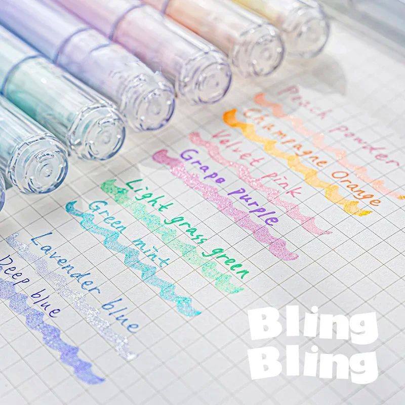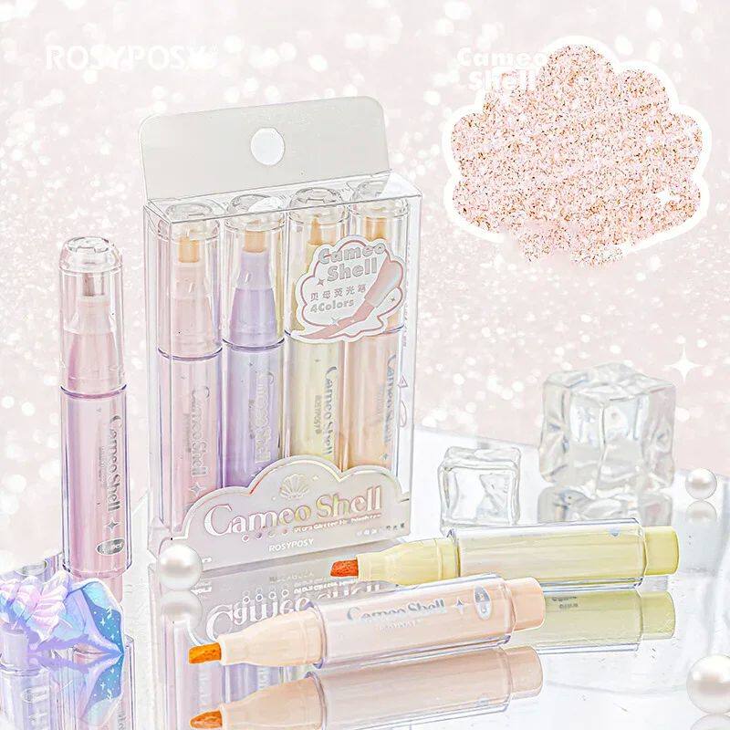 📚 4pcs Cute Glitter Marker Pens Highlighters Spot Liner Sketch