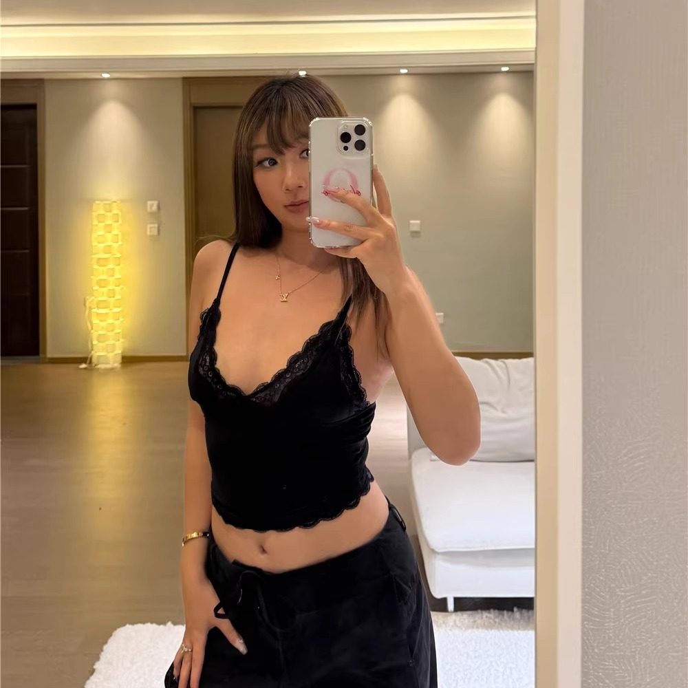 📚 skims风低胸深v蕾丝拼接无钢圈超薄凉爽性感吊带背心粉色黑色