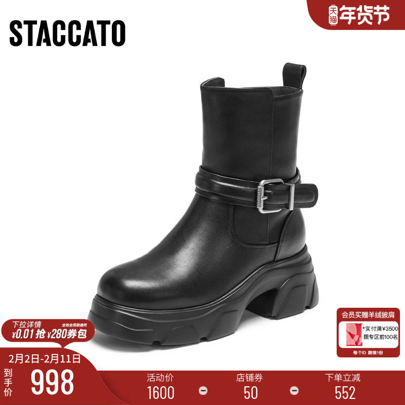 📚 思加图冬季新款英伦风雪地靴保暖毛里厚底中靴女靴子M3676DZ5