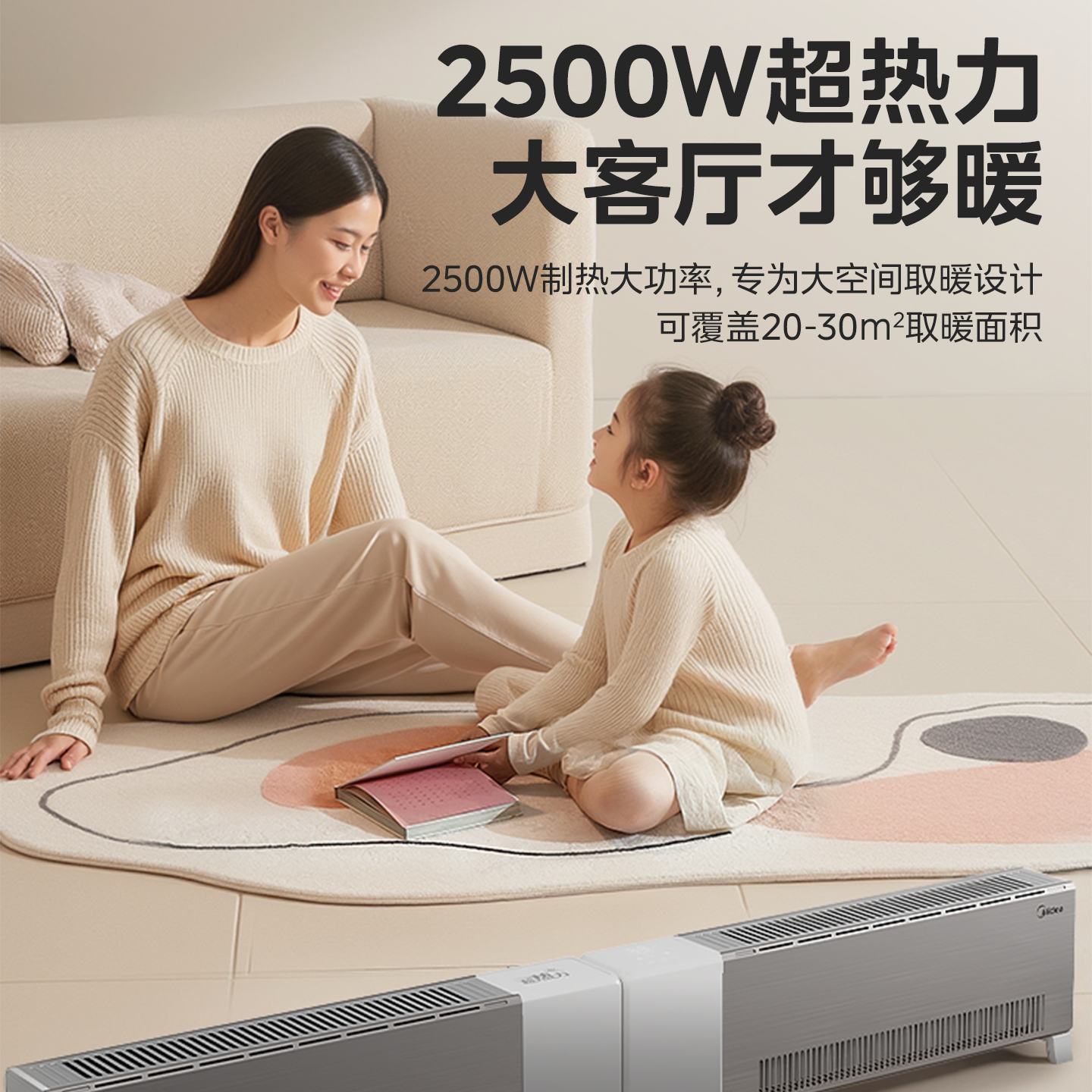 📚 美的踢脚线电暖气取暖器家用石墨烯大面积电暖器2025新款冬季神器
