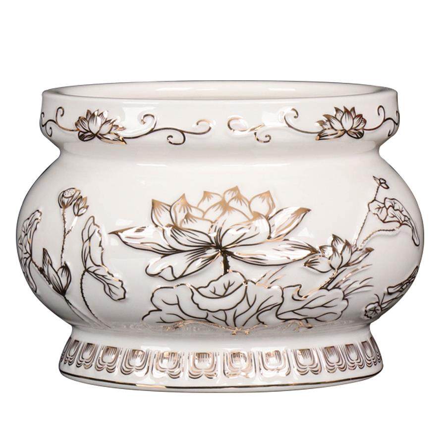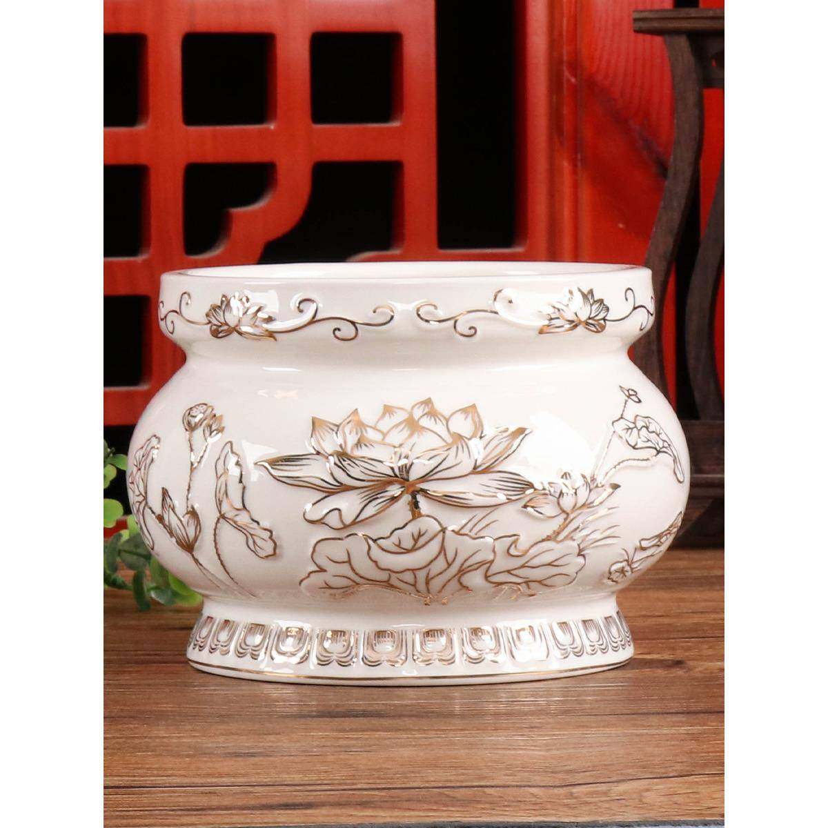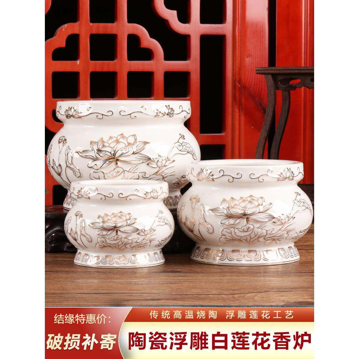 📚 香炉上供莲花烧香炉寺庙插香炉居室白瓷浮雕香炉供堂香炉用品