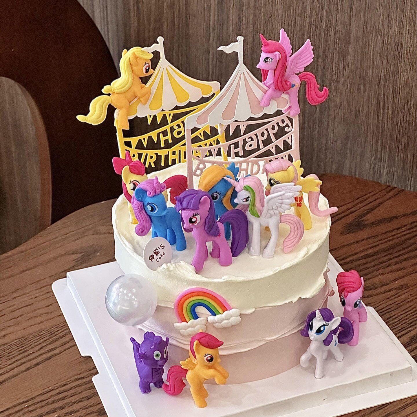📚 儿童粉色小马蛋糕装饰摆件彩虹独角兽小马女孩公主生日甜品烘焙