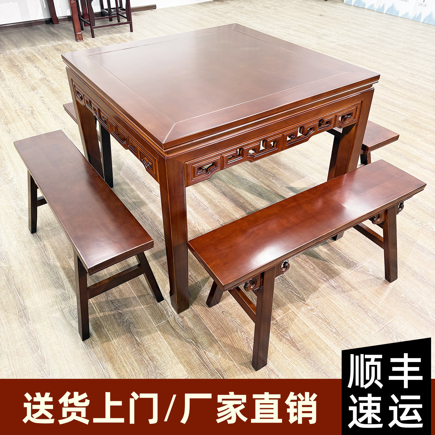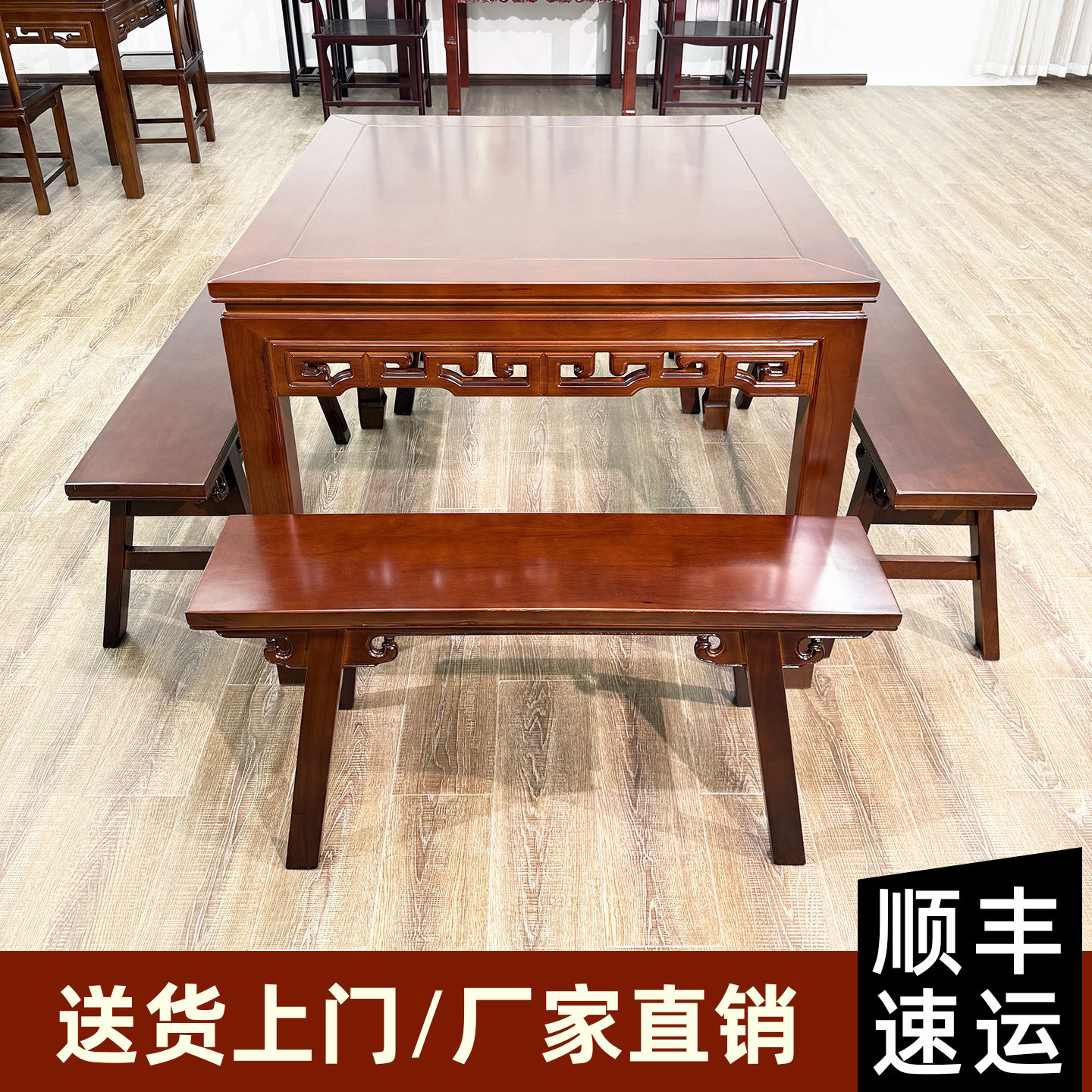📚 【整装发货】全实木八仙桌四方桌正方形农村中堂大桌中式仿古桌子