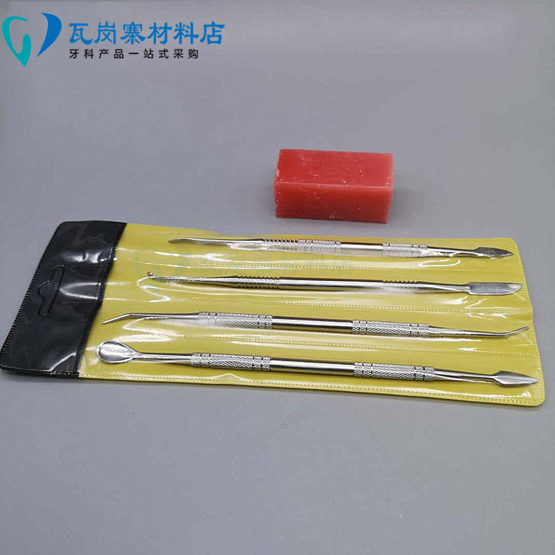 📚 牙科学生练习雕牙蜡刀4件套 不锈钢技工蜡勺蜡刀 蜡块 滴蜡器包邮