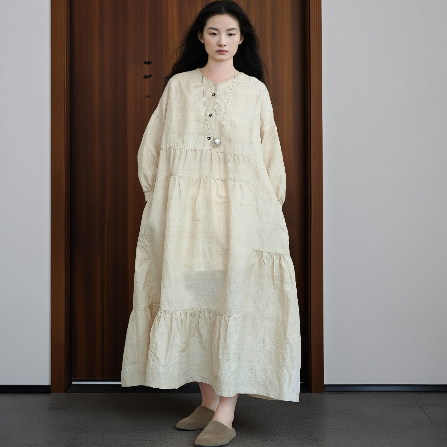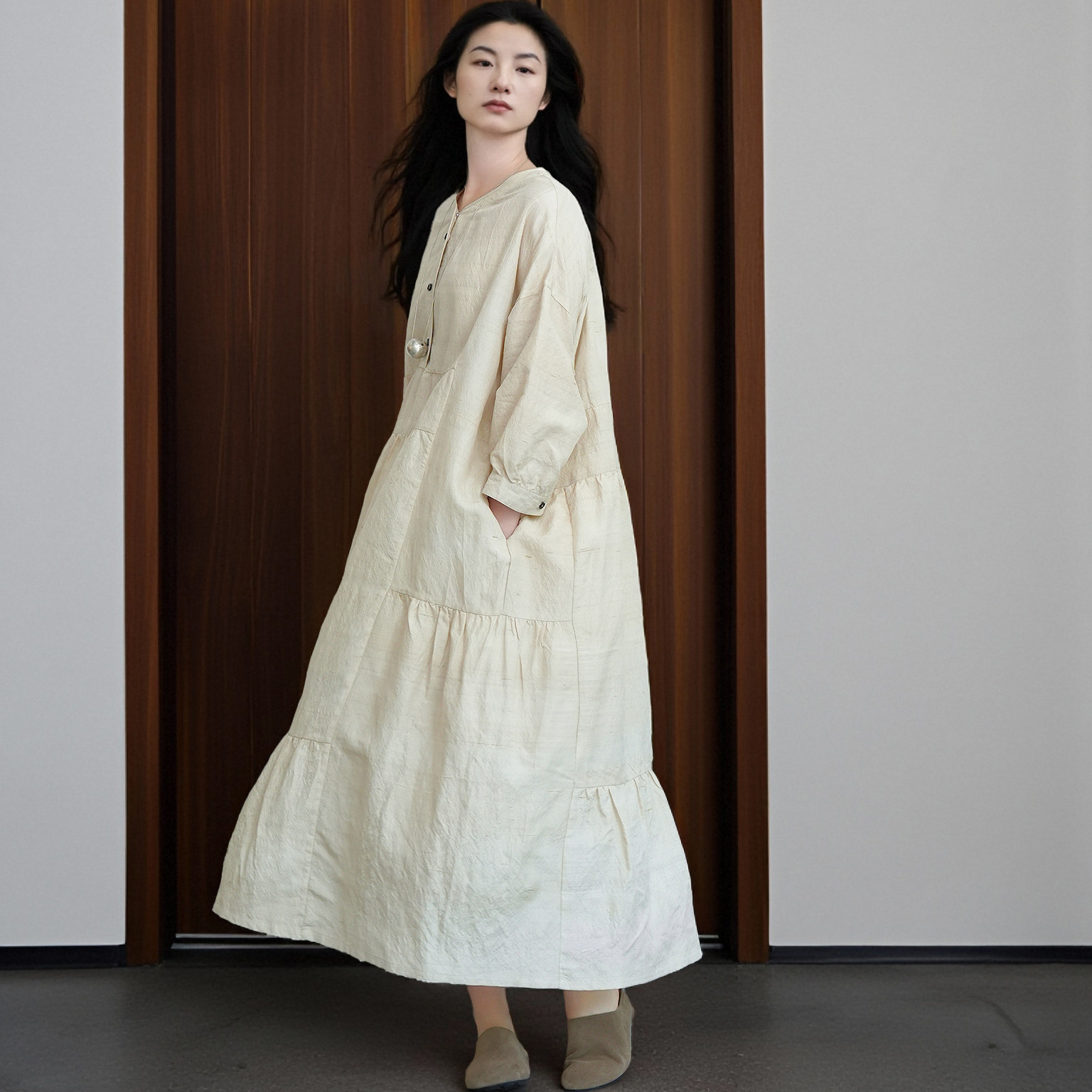 #知笔墨新品 #早秋新品 #手工纺工艺 #双宫柞蚕丝材质 #优雅连衣裙