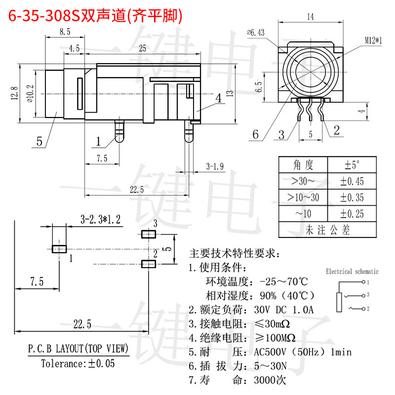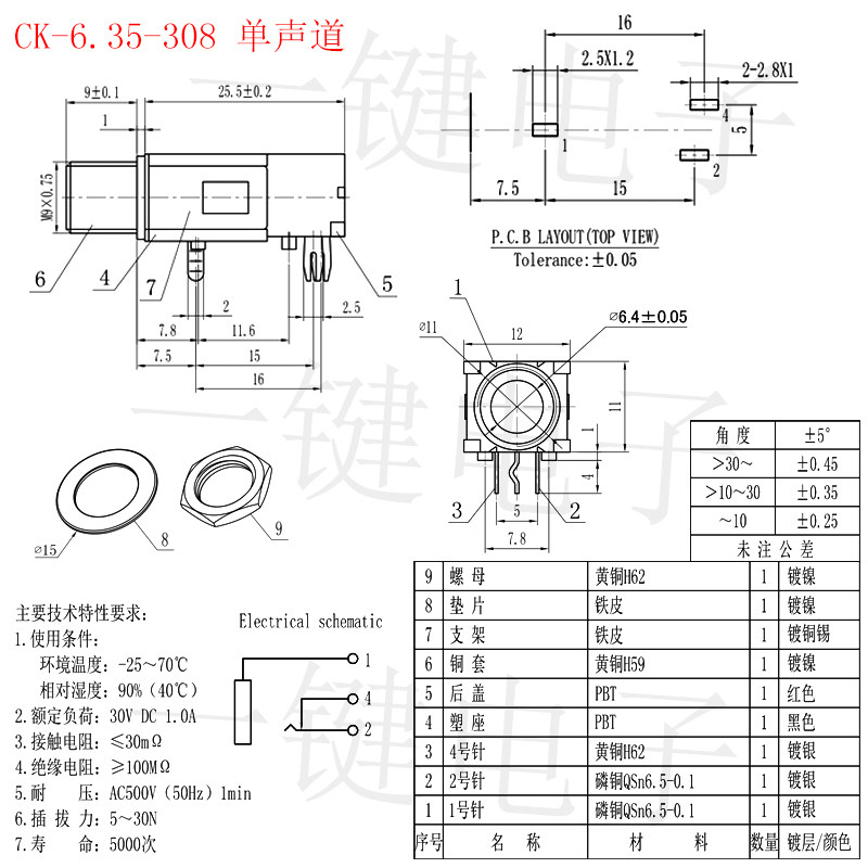 📚 308-PJ-602B插脚3脚单双声道 6.35mm耳机接口母座立体声音频插孔
