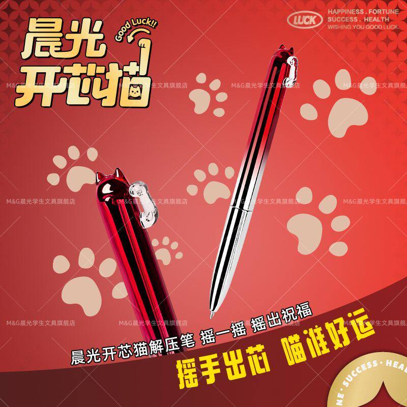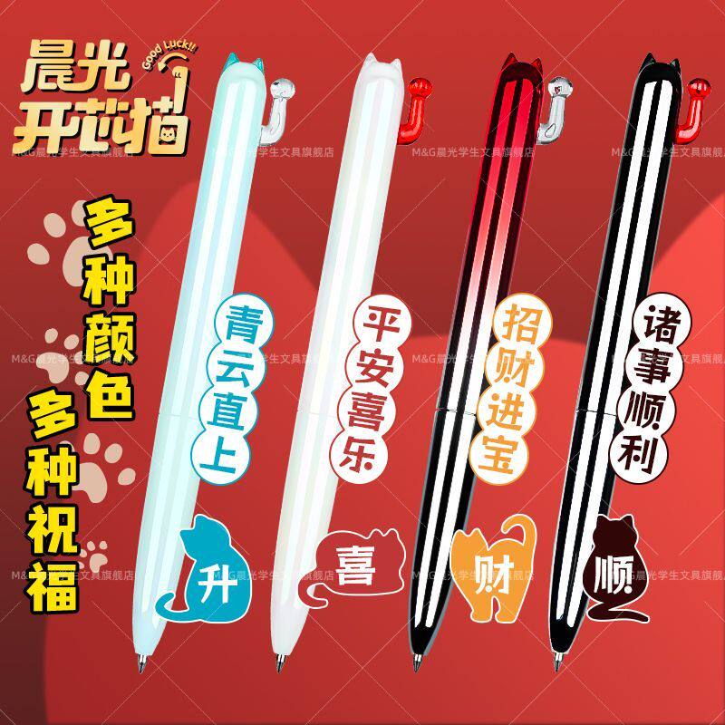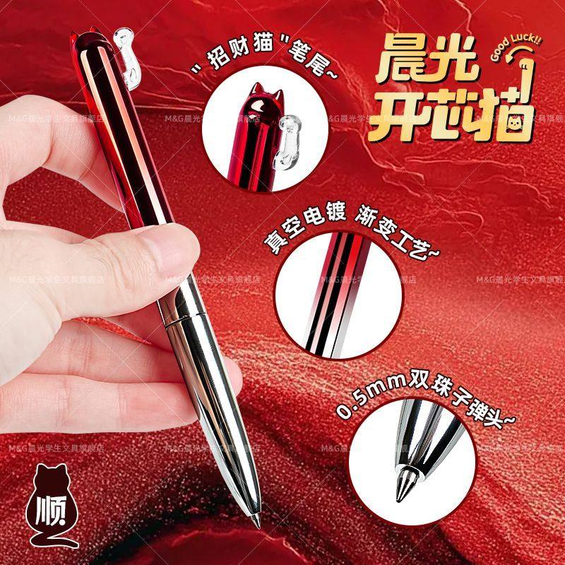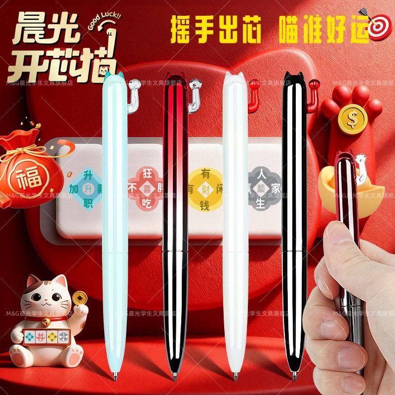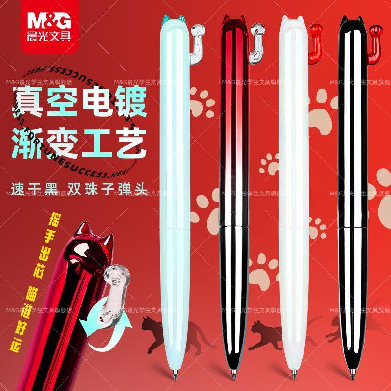 📚 晨光解压开芯猫按动中性笔速干0.5双珠子弹头高颜值渐变色超萌笔创意日常书写