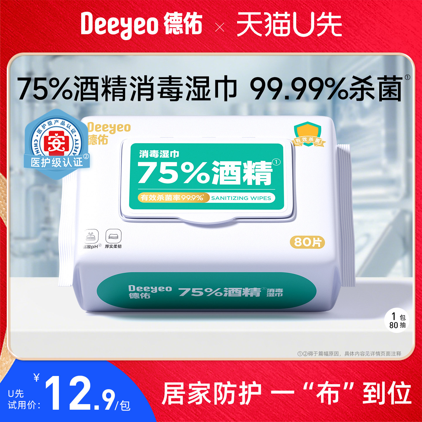 💥德佑75度酒精消毒湿巾大包,让家庭清洁更便捷💪
