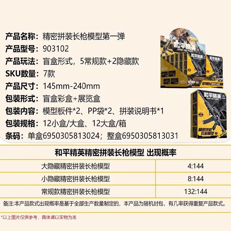 📚 三宝积木盲盒和平精英长枪合金枪管M416/AWM武器儿童玩具模型MK14