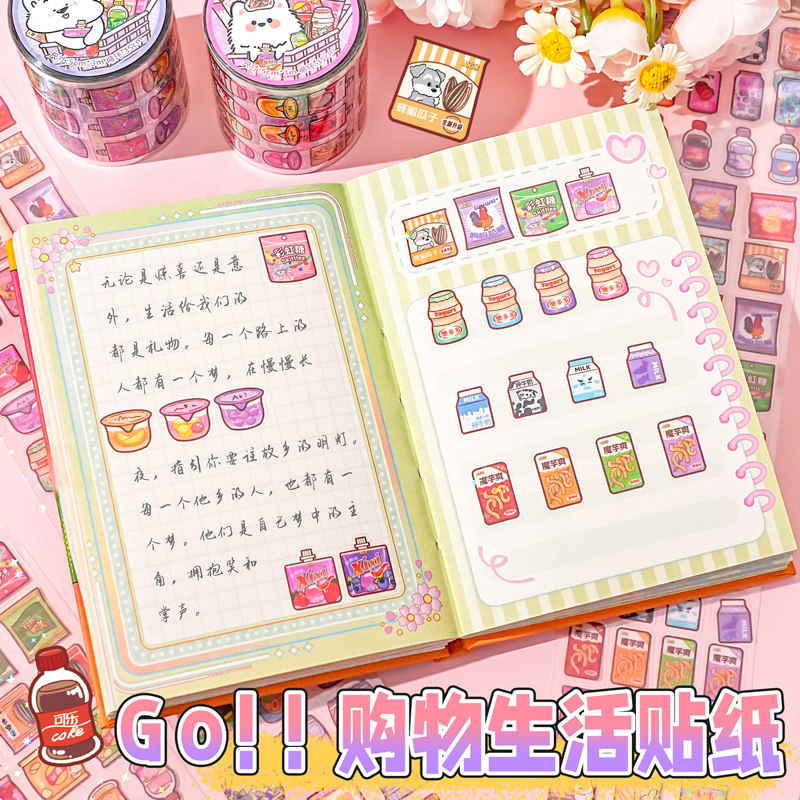 📚 免裁剪咕卡零食PET胶带手帐贴纸 可爱ins卡通高颜值手账贴画图案