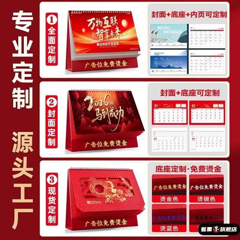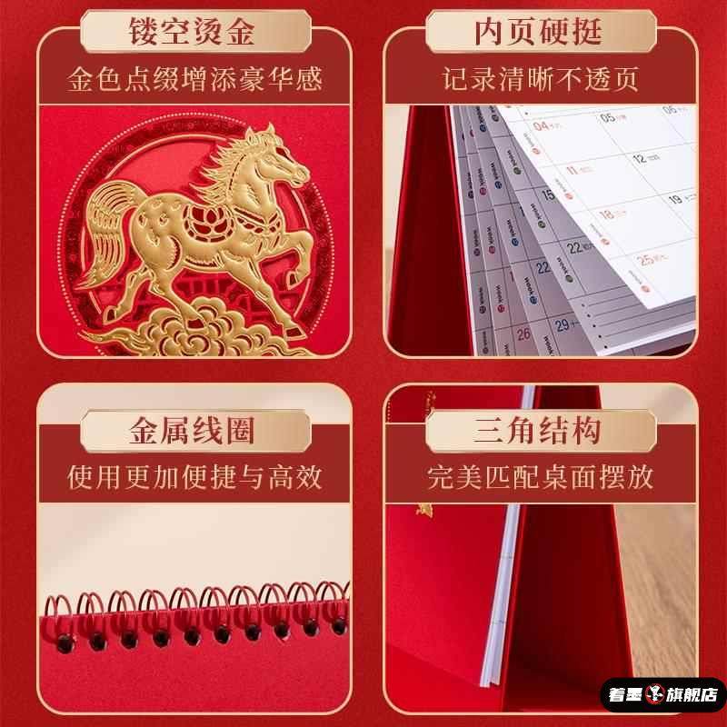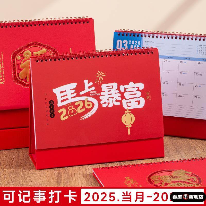 📚 台历2026年新款简约创意桌面摆件马年新年中国风喜庆日历本纸质计画打卡年历纸架月历商务办公记事台历定制