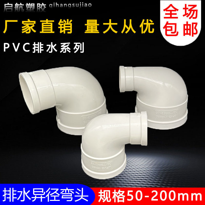 📚 PVC排水异径弯头 变径直弯110变90 75 50 90度直角大小弯头管配件