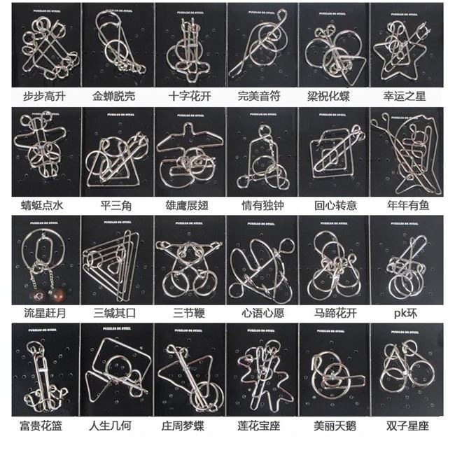 📚 直销 益解环扣儿童学生成人解压金属九连环玩具24件套装