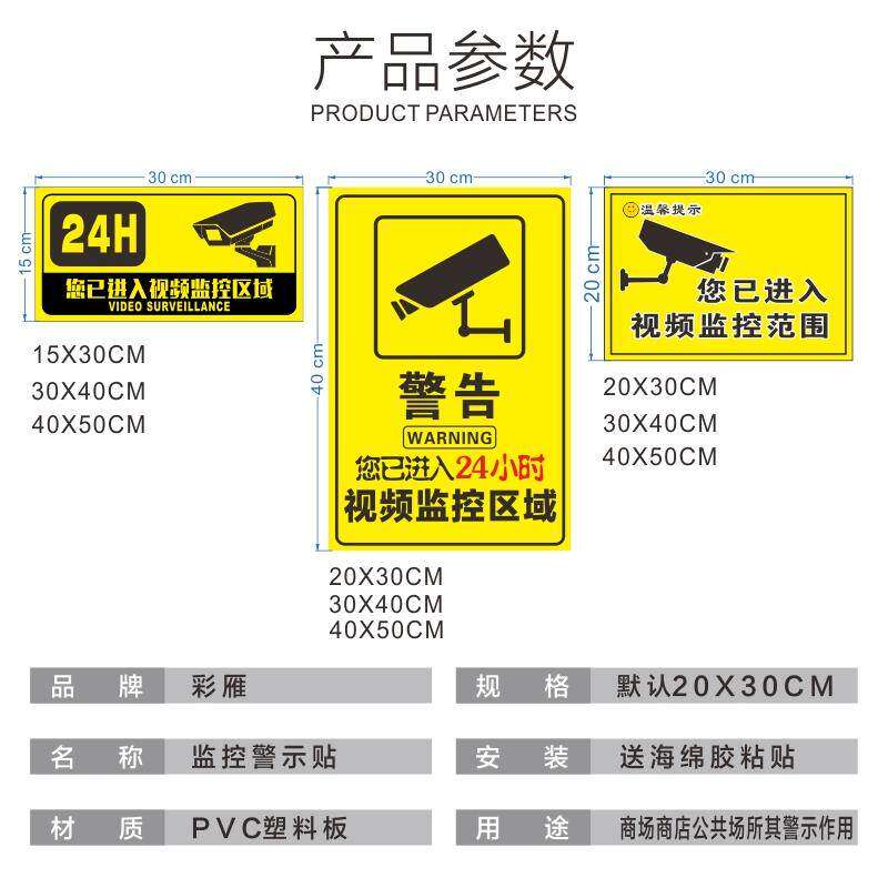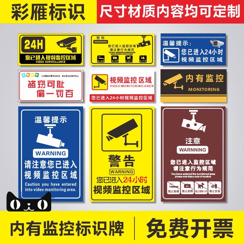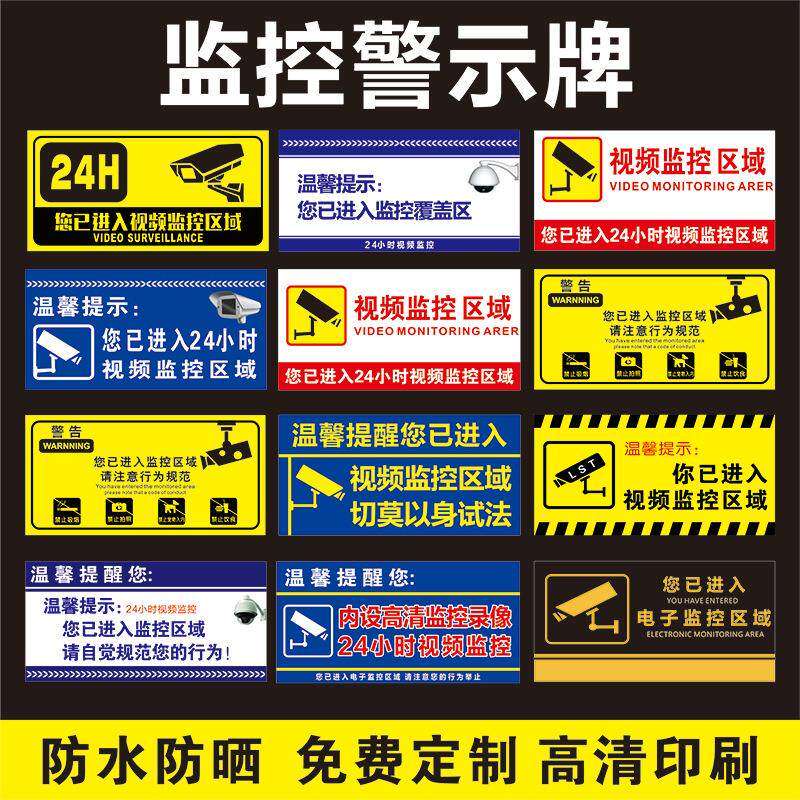 📚 内有监控警示牌你已进入电子监控范围区域店内此处有监控标志指示牌温馨提示110报警联网标识标语贴纸定制