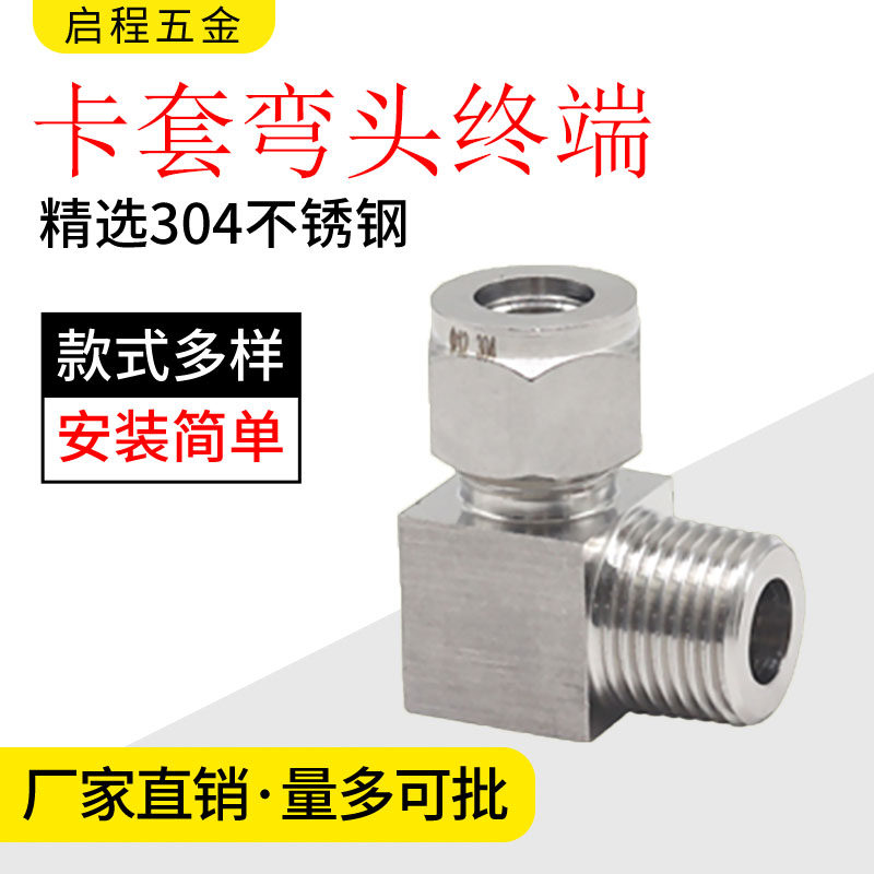 📚 304不锈钢直角终端接头卡套式90度弯头不锈钢抛光管接头非标定制m